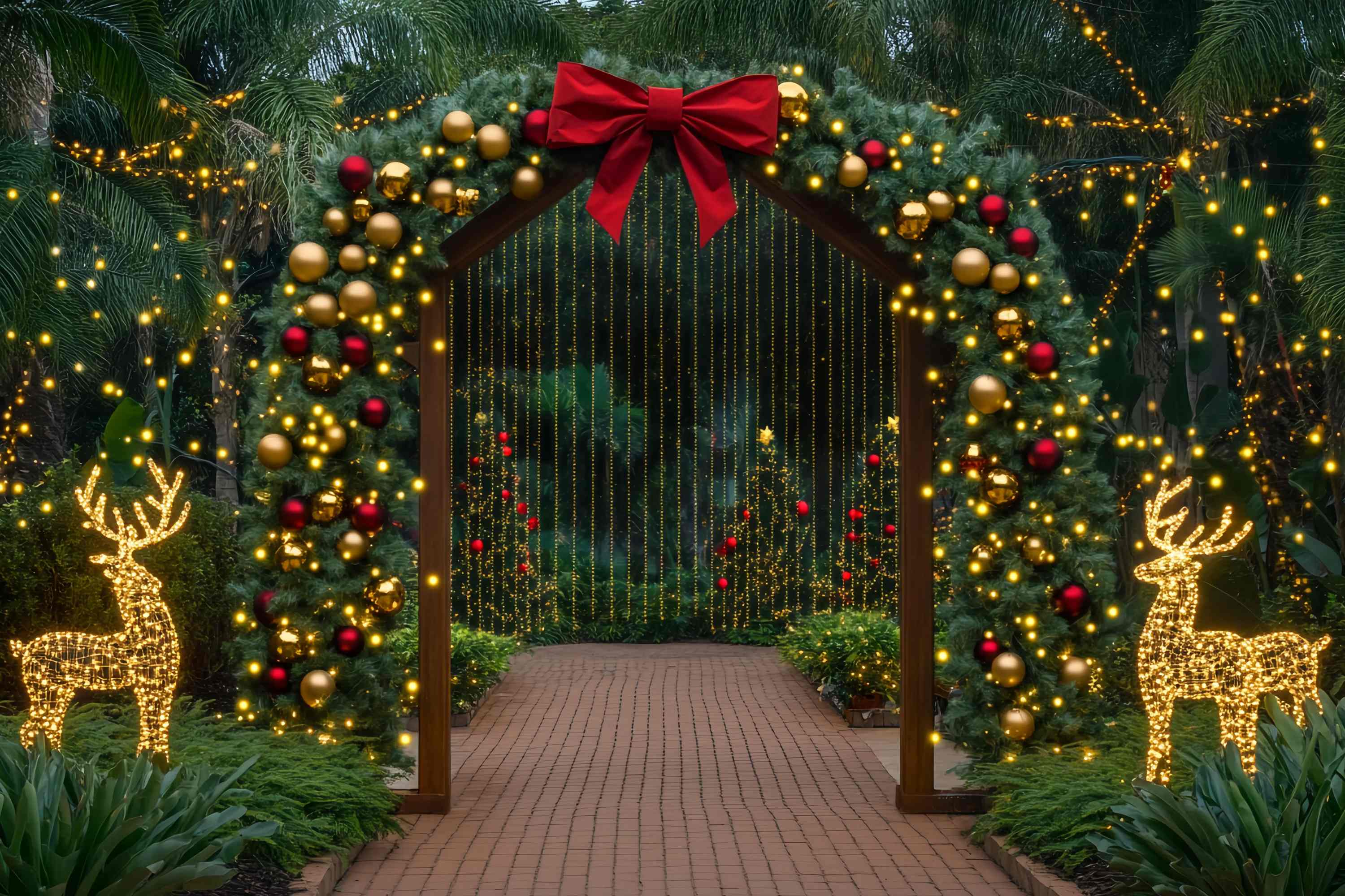 Holiday Backdrops Twinkling Christmas Gate Forest Christmas Tree Backdrop GQ58-1