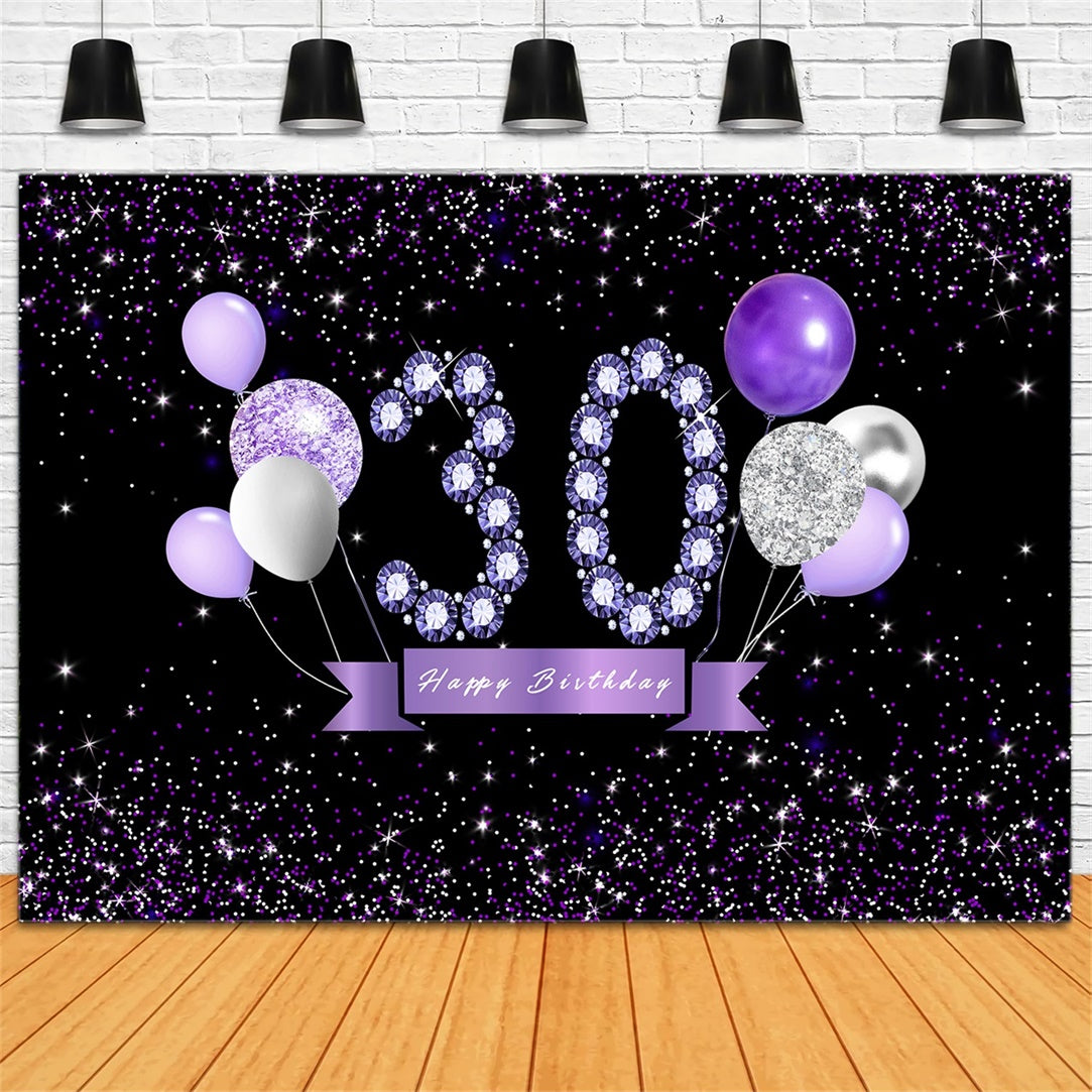 30th Birthday Backdrop Crystal Balloon Purple Custom Backdrop RR12-32