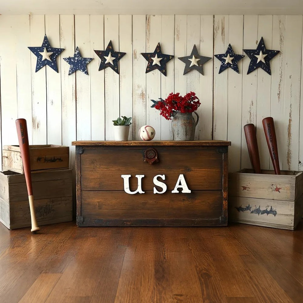 4th of July Photo Backdrop Rustic Baseball Room Backdrop CSH6-6