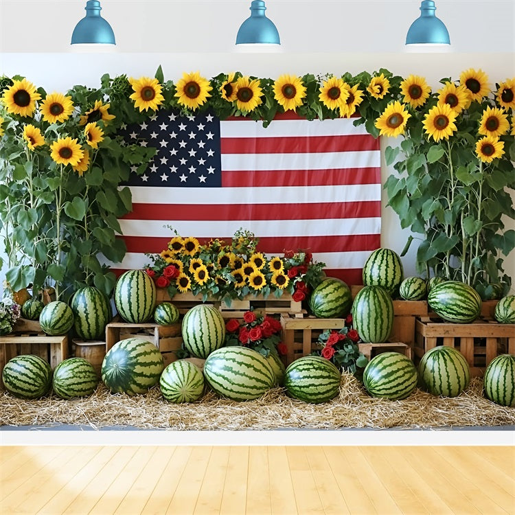 American Flag Backdrop Watermelon Sunflower Independence Backdrop GQ5-20