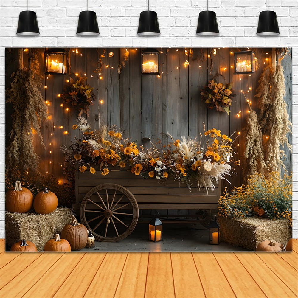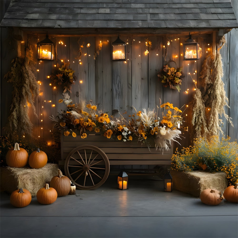 Autumn Harvest Barn Flowers Wood Cart Backdrop RR9-36