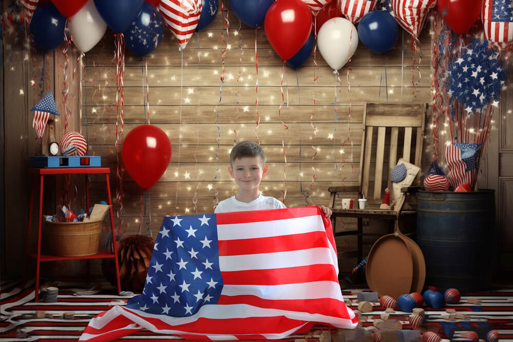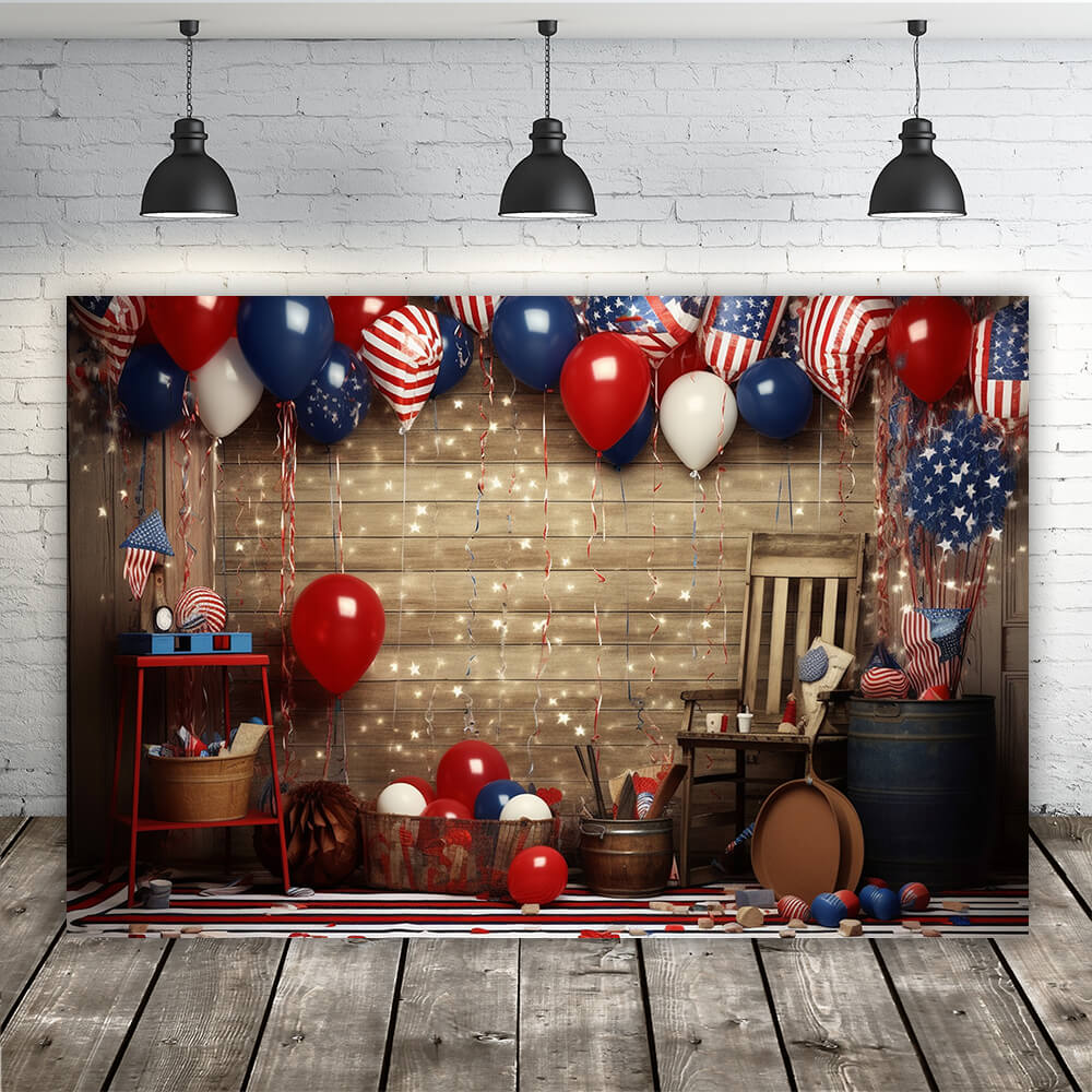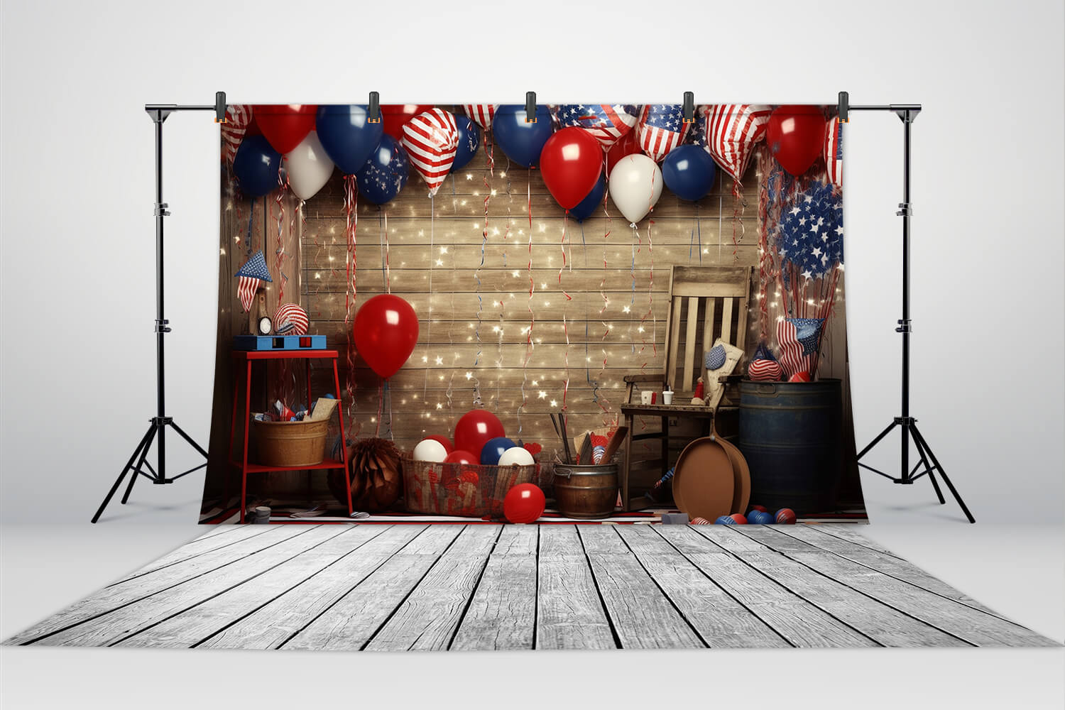 Balloons Wood Wall Independence Day Backdrop RR6-12