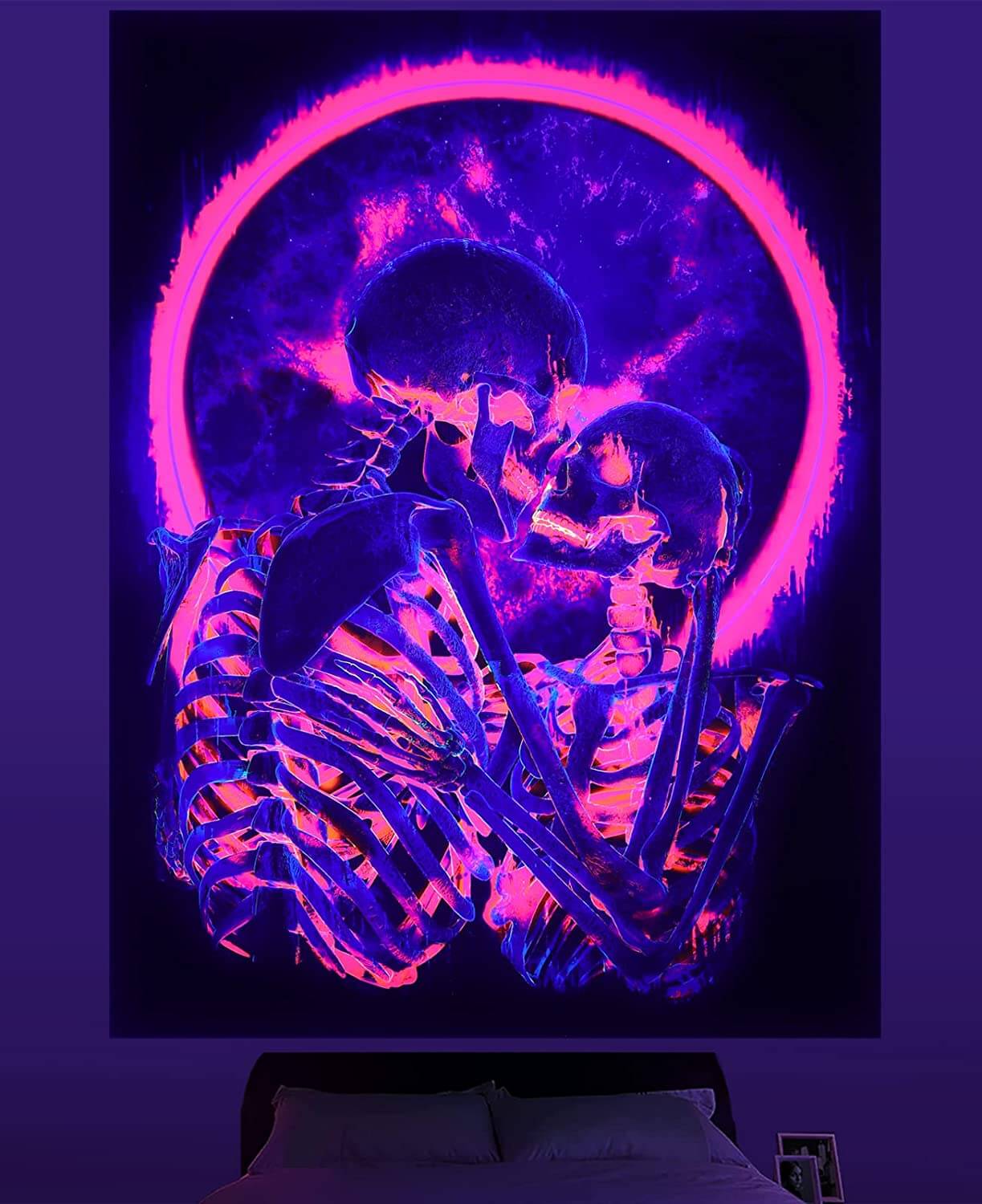 The tapestry is already beautiful under daily light. In the dark environment, the change of black light / ultraviolet light makes it more vivid and shine brightly.