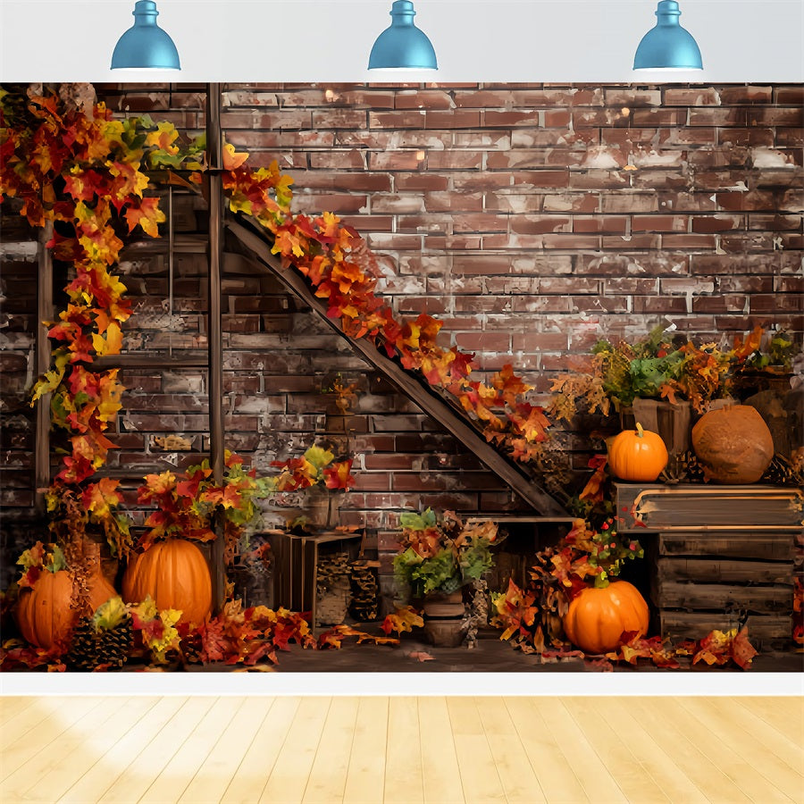 Brick Wall Backdrops Autumn Pumpkins Maple Leaves Brick Backdrop TWW59-195