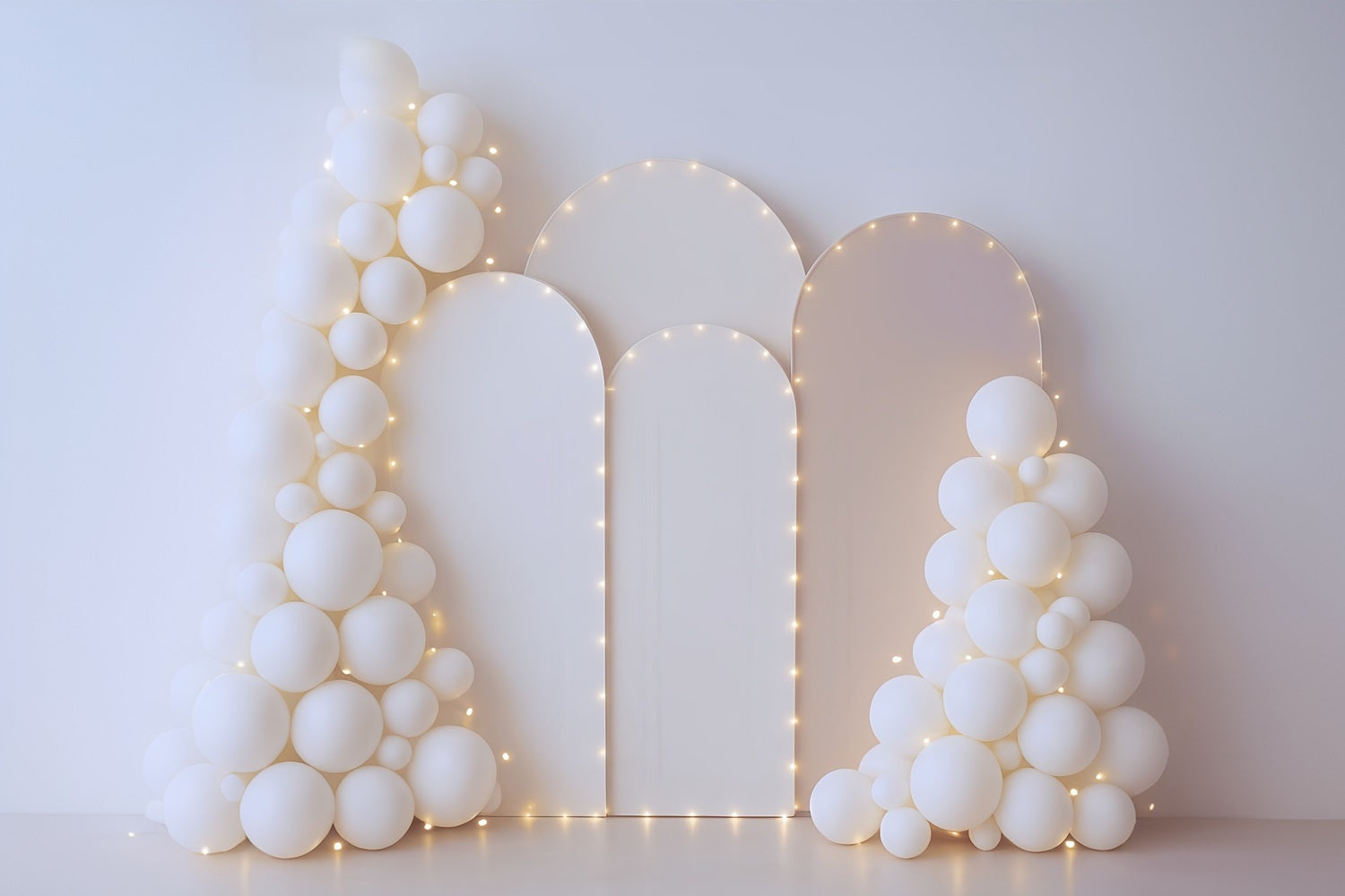 Cake Smash Backdrop Minimalist White Balloon Arches Birthday Backdrop MRR9-36