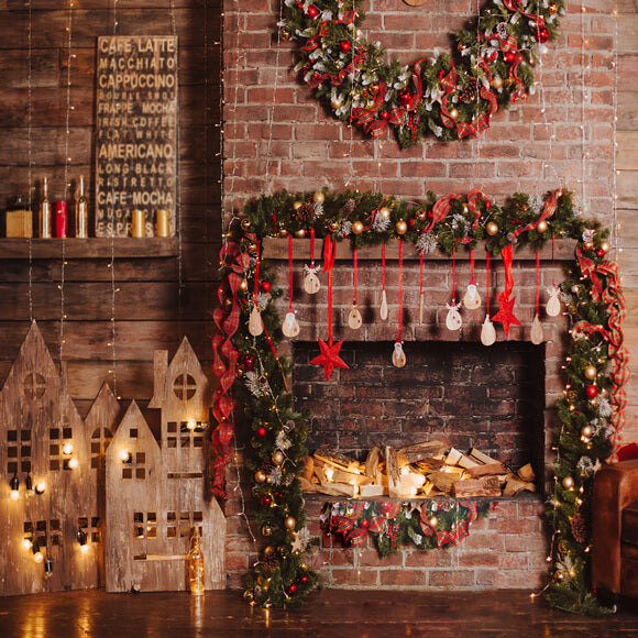 Christmas Decorations Brick Wall Photography Backdrops DBD-19186