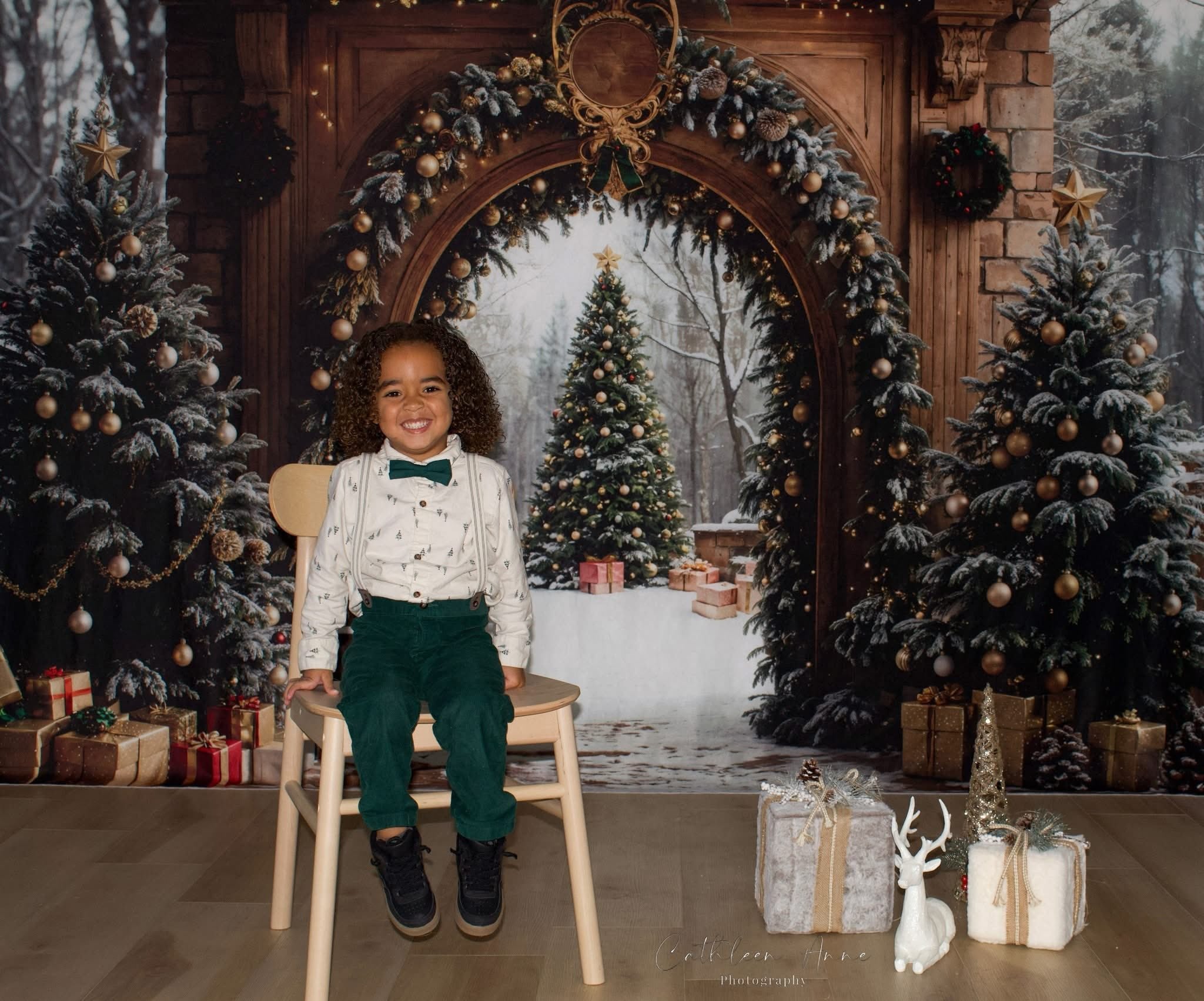 Christmas Tree Backdrop Snowy Forest Arch Door Christmas Photo Backdrop MRR9-77