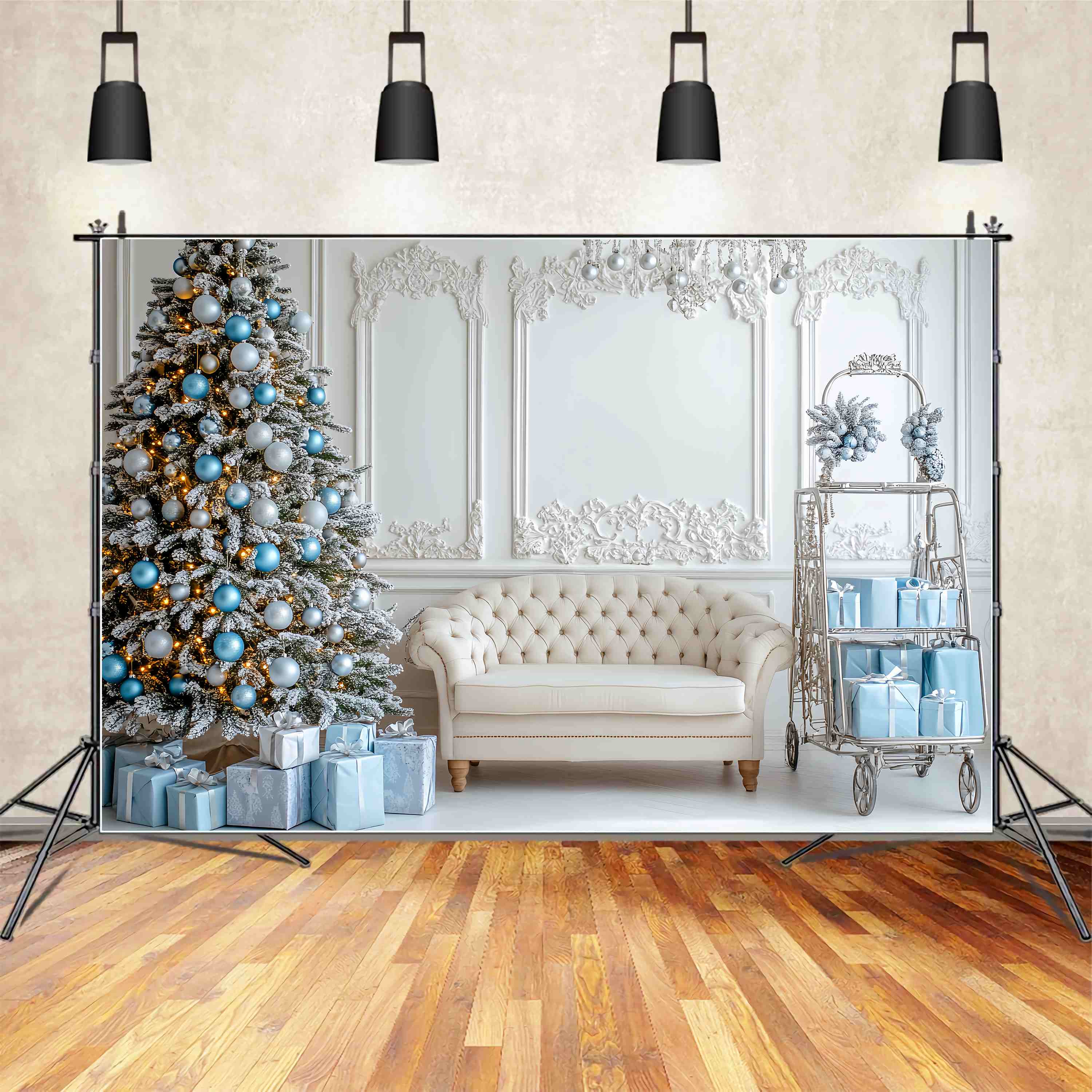 Christmas Wall Backdrop Icy Blue Ornament Lounge Room Professional Christmas Backdrops LXX58-74
