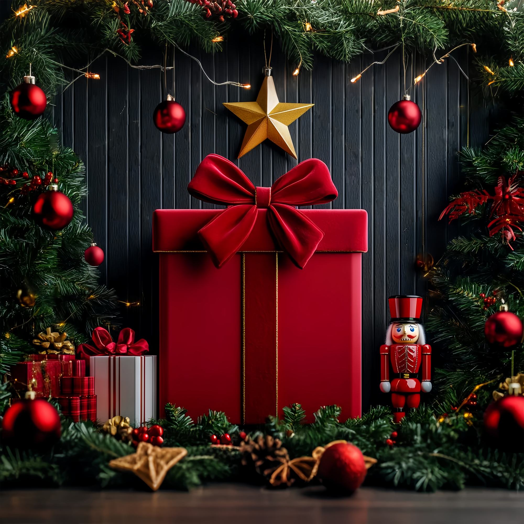Christmas Wall Backdrop Red Velvet Bow Nutcracker Wall Christmas Backdrop for Photos LXX58-76