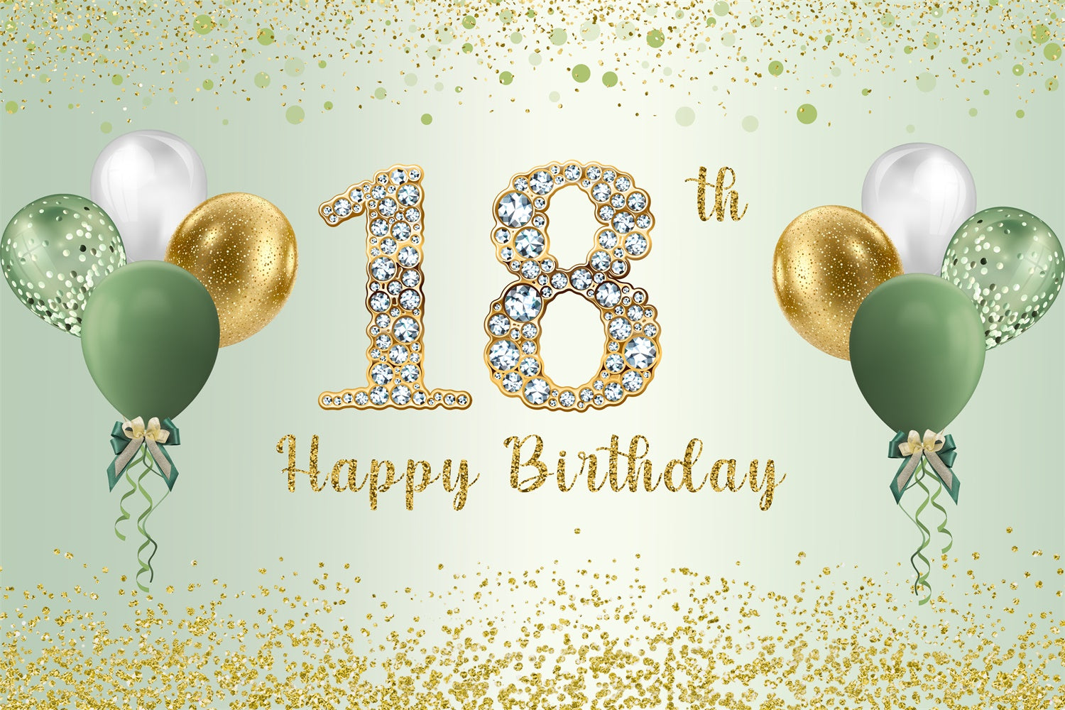 Custom 18th Birthday Backdrop Shiny Green Gold Balloon Backdrop RR1-65