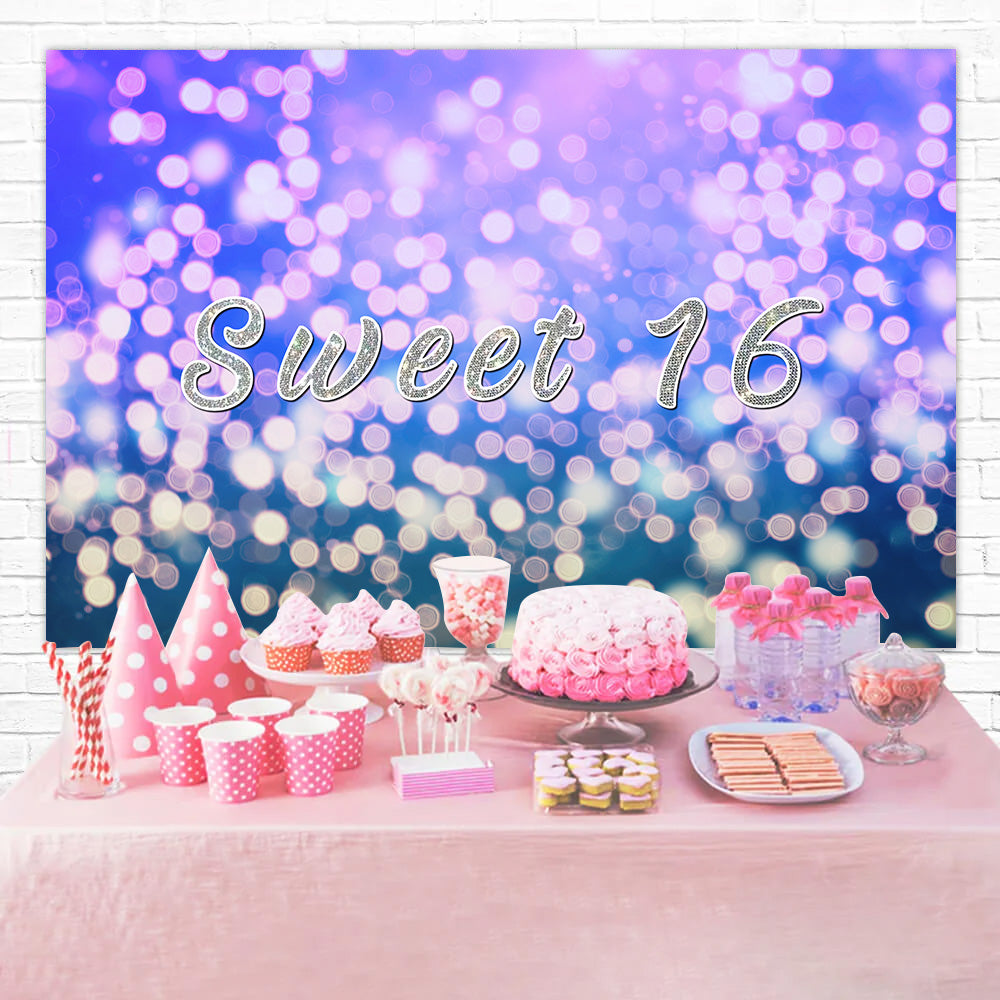 Custom Birthday Backdrop Dreamy Purple Bokeh Sweet 16 Backdrop RR1-56