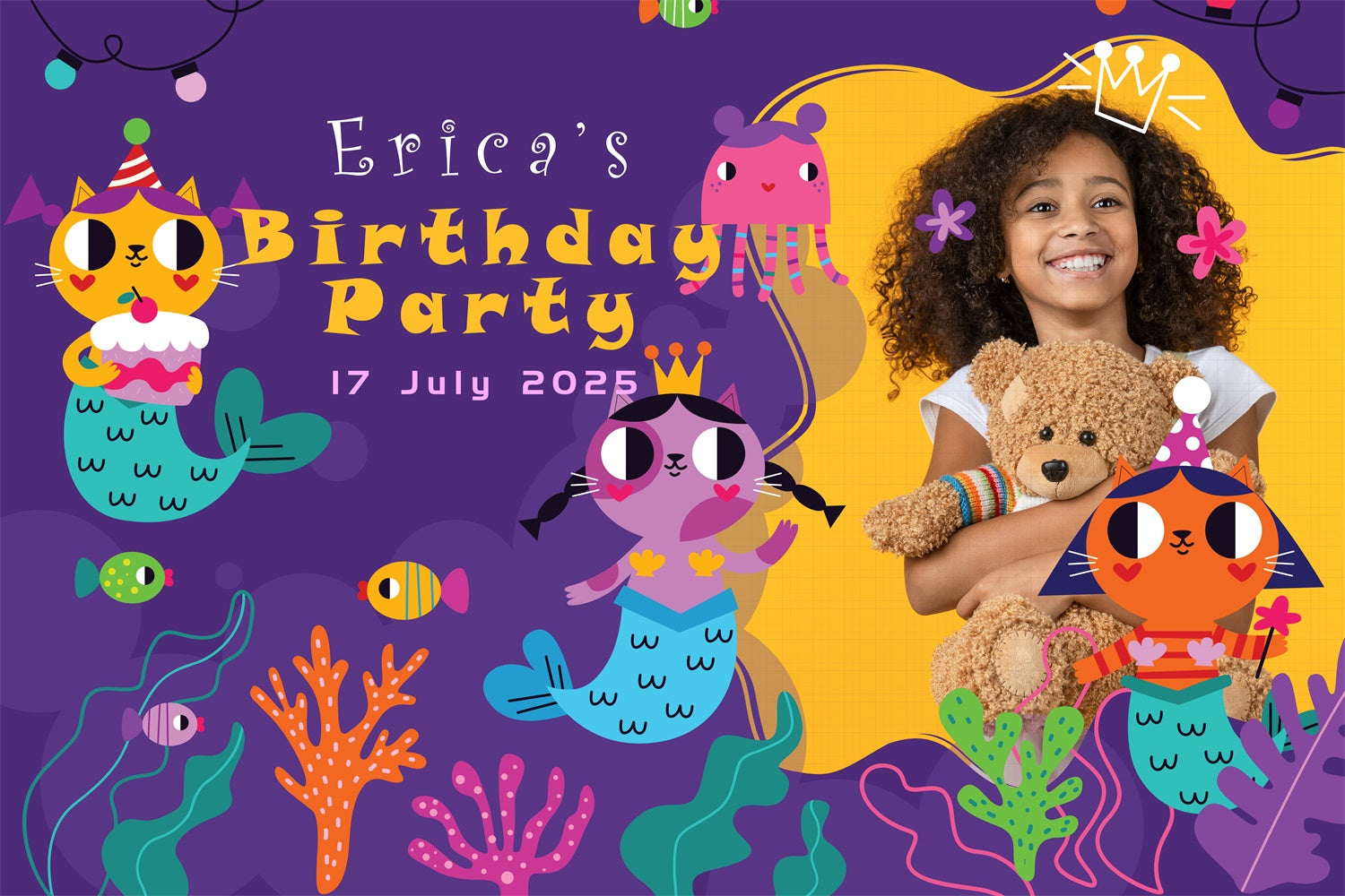Custom Birthday Backdrops Colorful Ocean Mermaid Fun Backdrop RR1-45