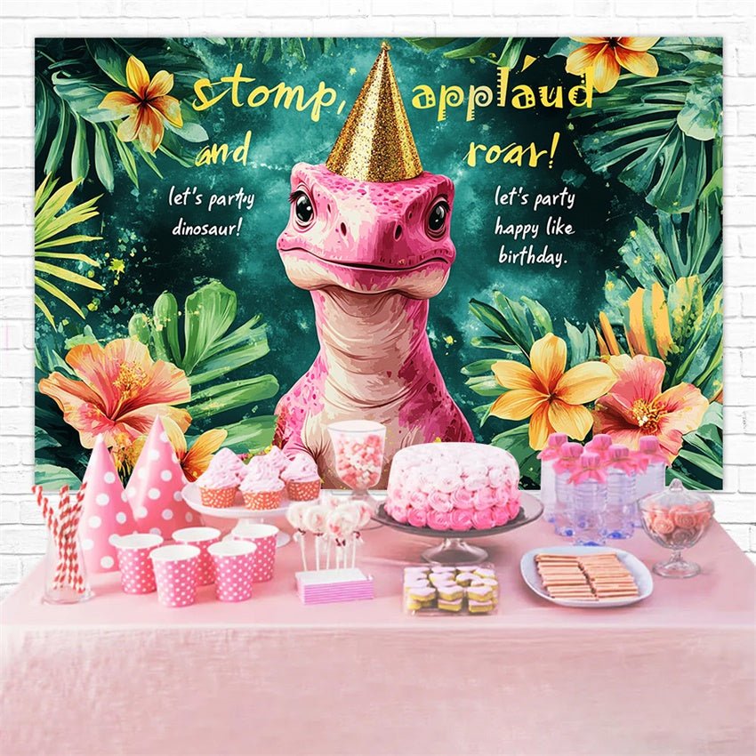 Custom Birthday Backdrops Tropical Jungle Dino Party Backdrop RR1-32