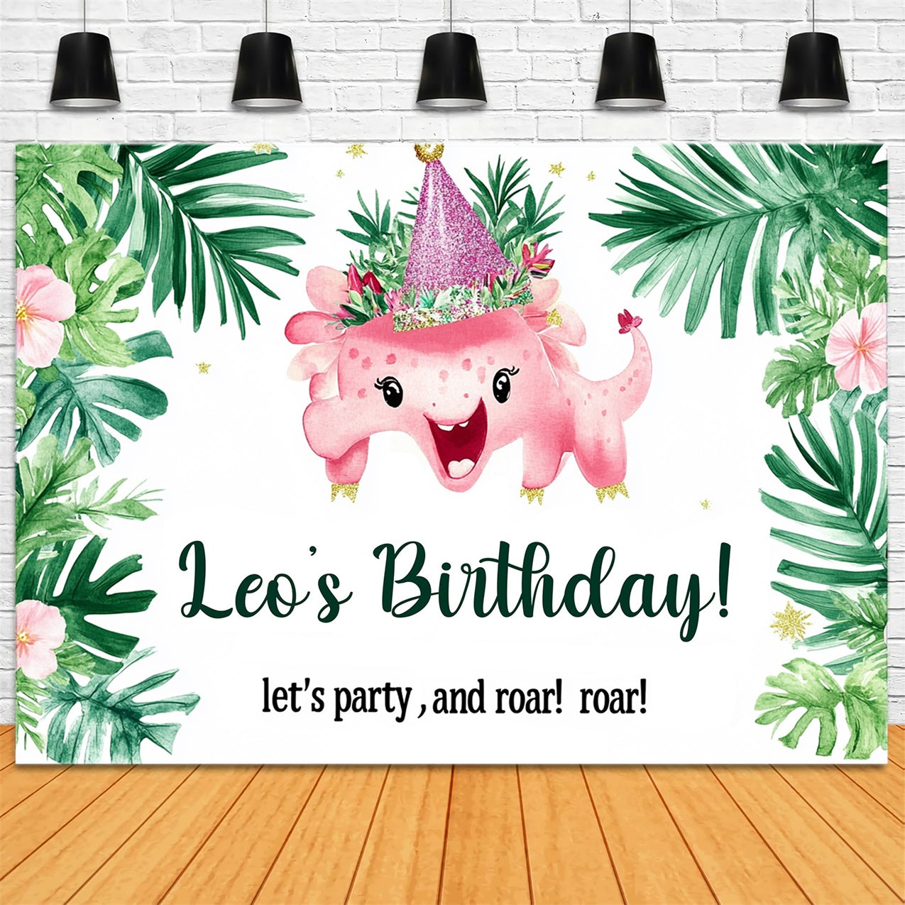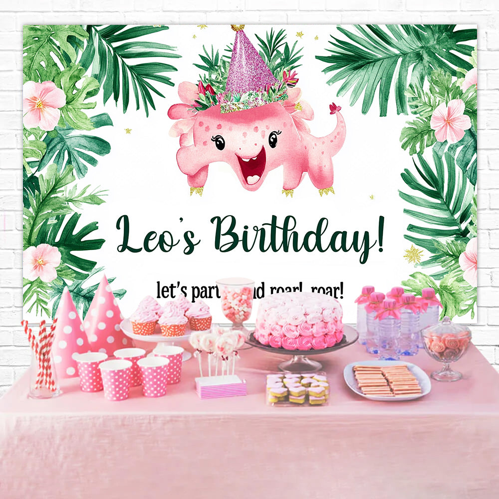 Custom Made Birthday Backdrops Tropical Leaves Dino Backdrop RR1-31