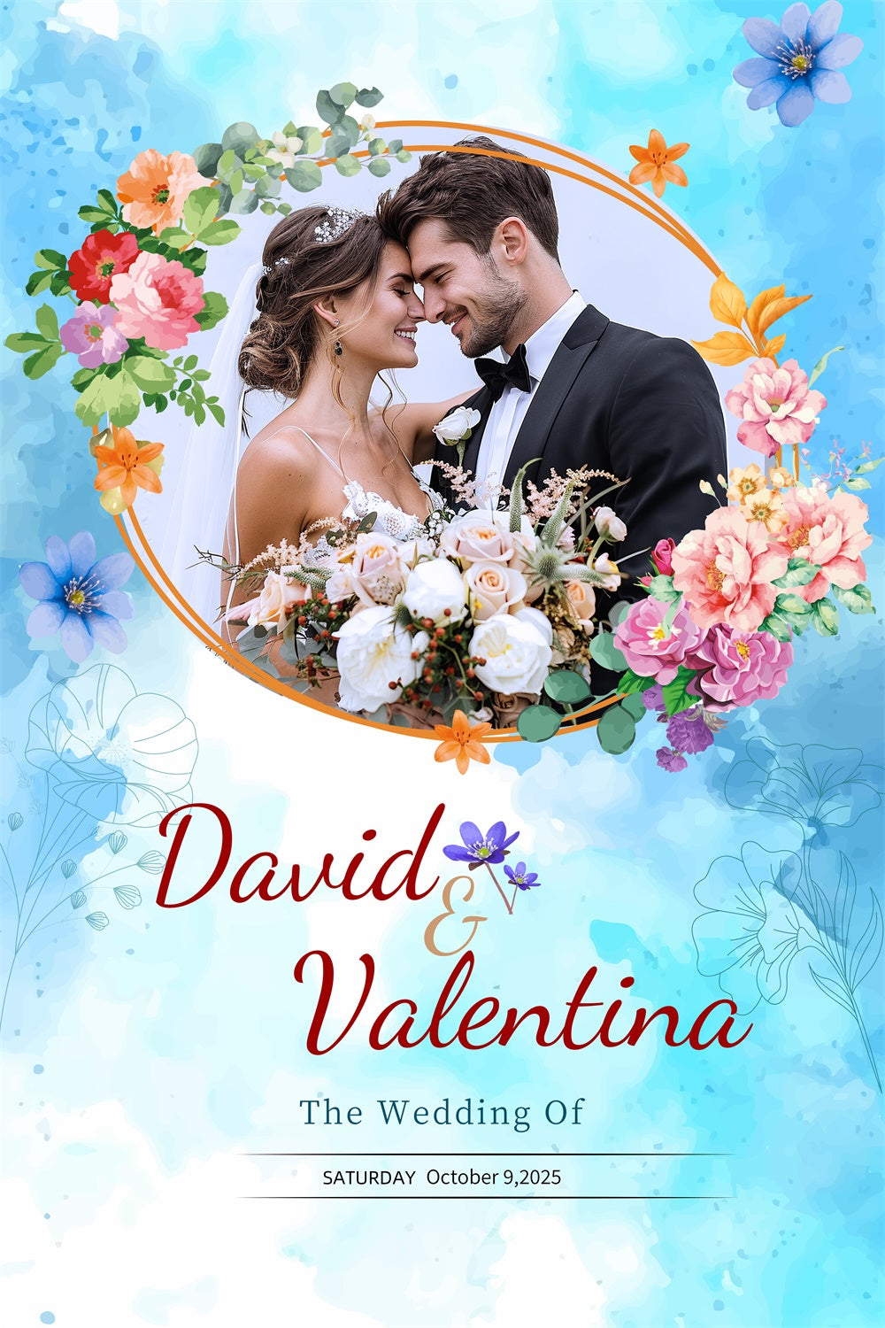 Custom Wedding Backdrops Elegant Floral Blue Celebration Backdrop LXX2-170