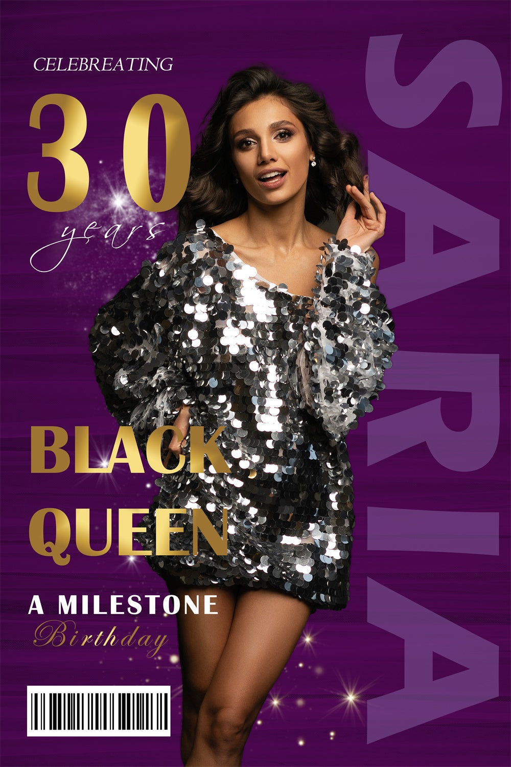 Customize Birthday Backdrop 30th Glamorous Purple Party Backdrop RR12-63