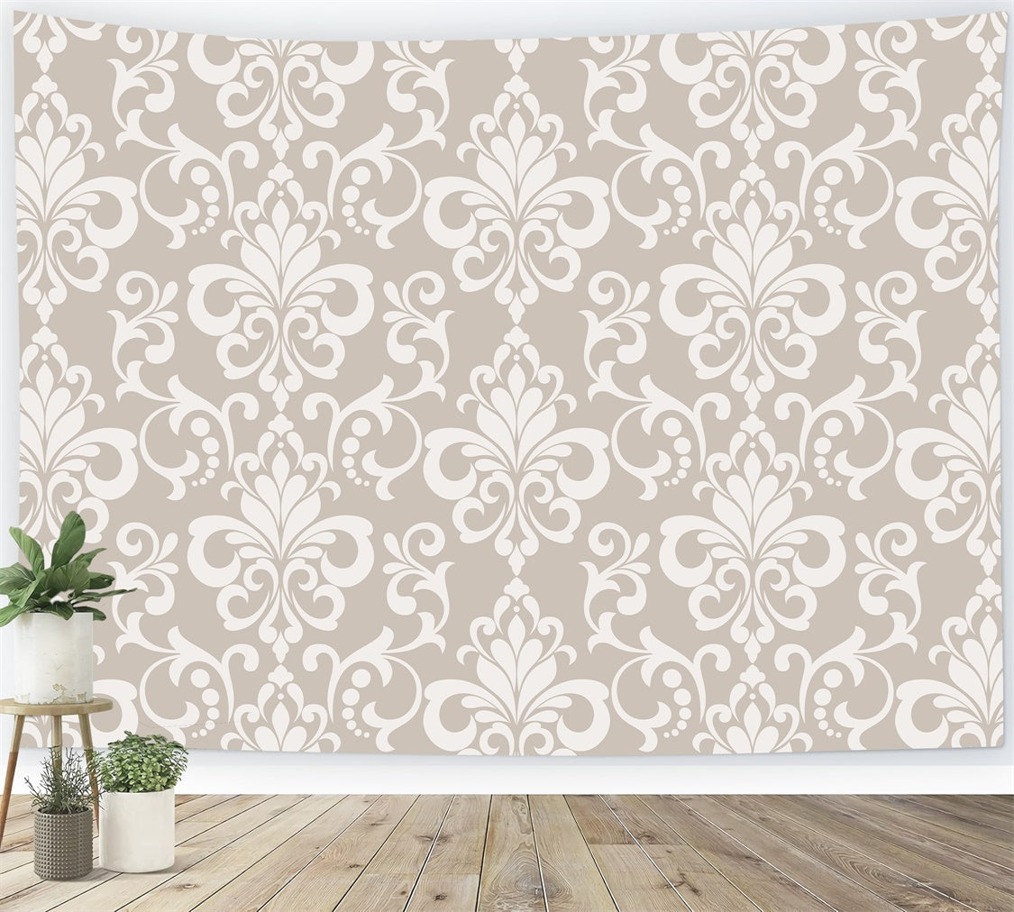 Damask Backdrops Light Beige Regal Symmetrical Design Backdrop BRP12-601