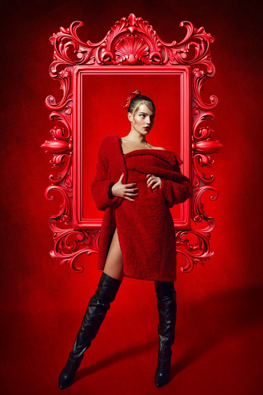 DBackdrop Art Vintage Red Rectangle Photo Frame Abstract Backdrop RR4-51