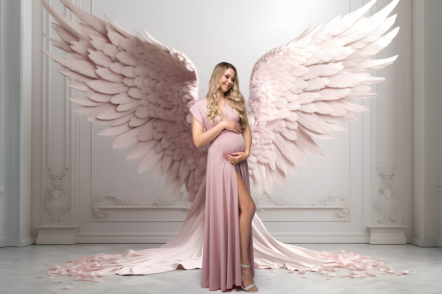 DBackdrop White Vintage Wall Pink Elegant Angel Wings Backdrop RR4-18