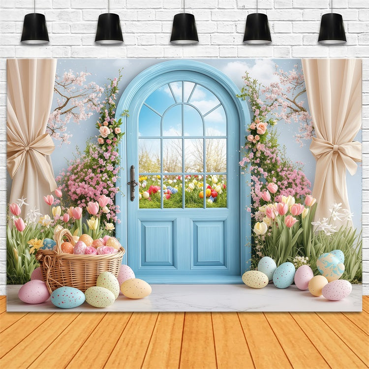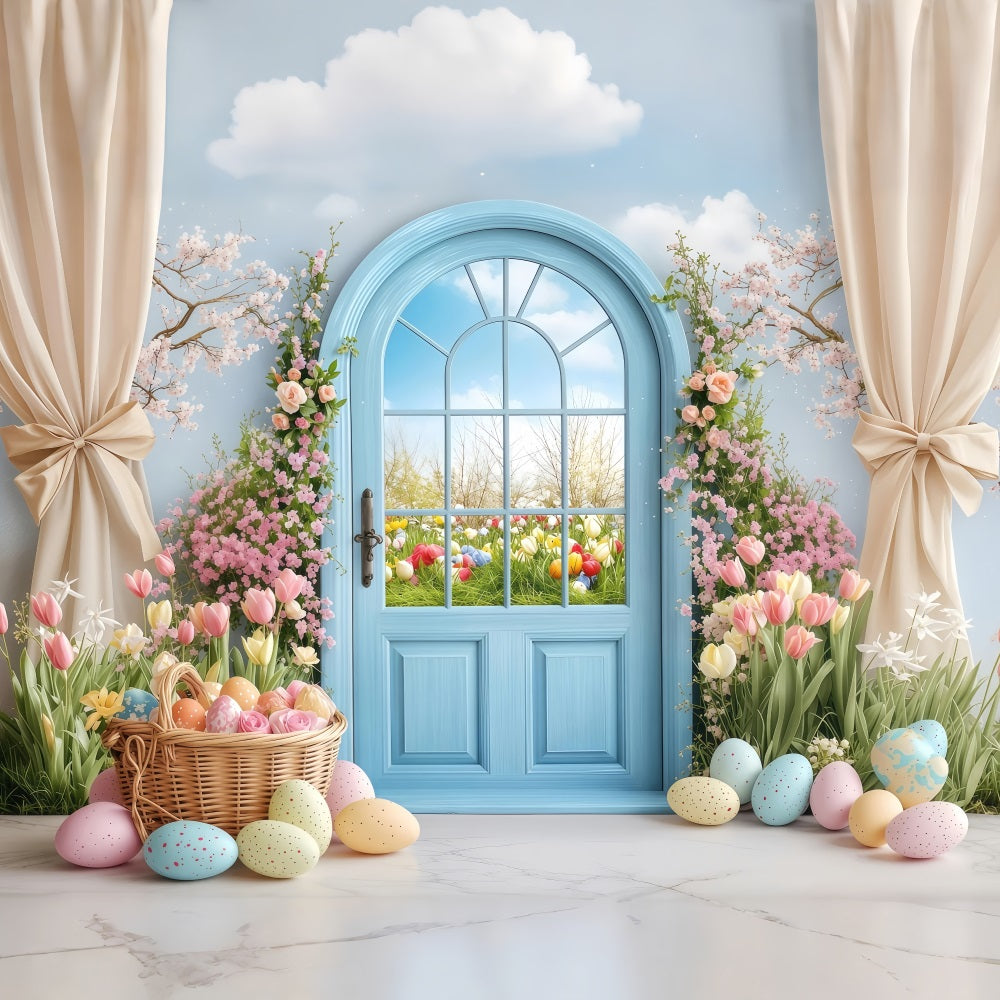 Easter Backdrop Photography Spring Garden Blue Door Backdrop BRP1-225