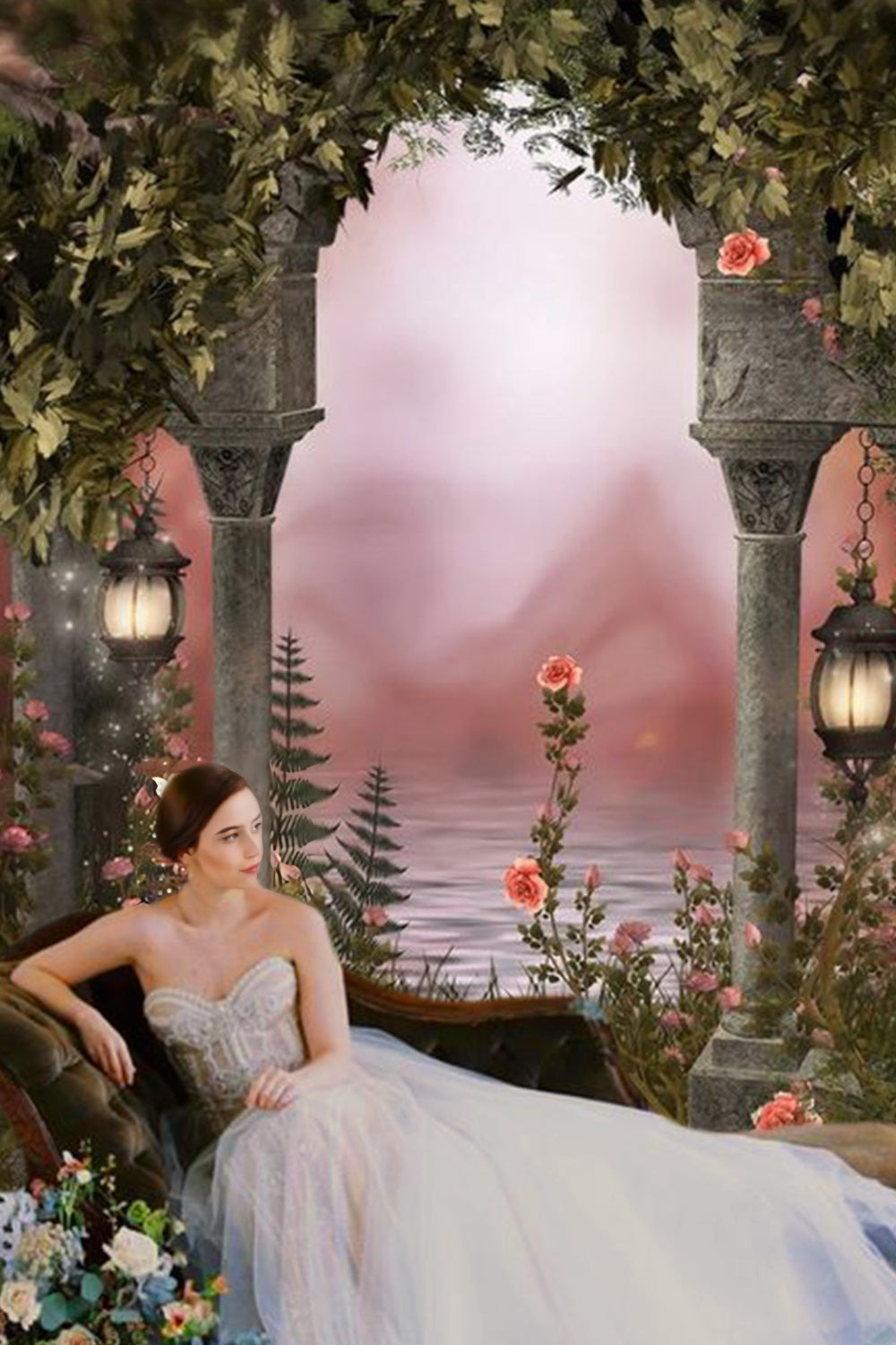 European Vintage Romantic Flower Street Lamp Garden Backdrop RR3-03
