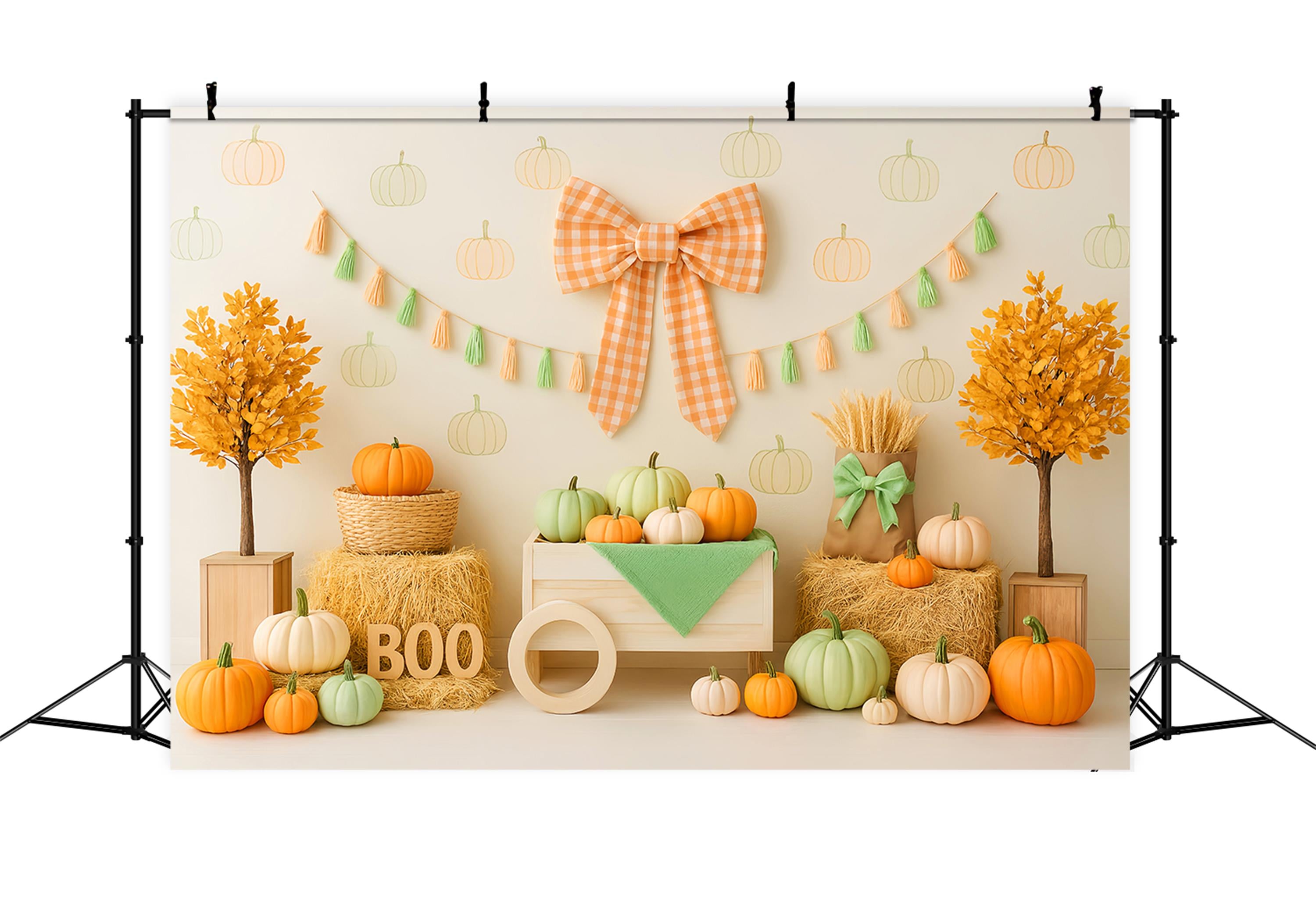 Fall Backdrop Pumpkin Bow Harvest Display Fall Backdrop for Pictures LXX59-263