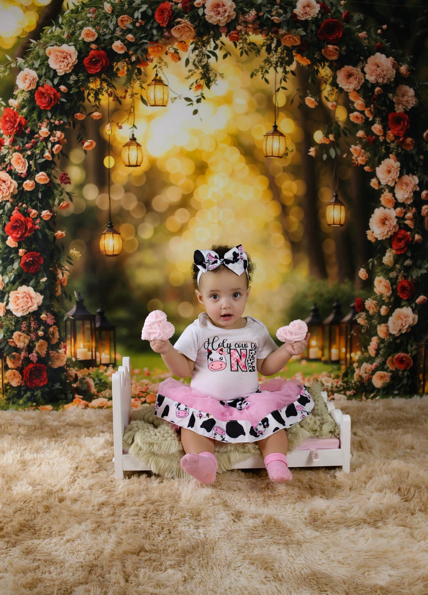 Flower Backdrop Romantic Rose Arch Lanterns Floral Photo Backdrop MRR9-81