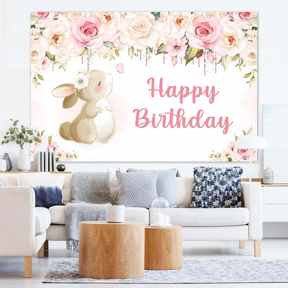 Flower Cute Rabbit Custom Birthday Party Backdrop M-02