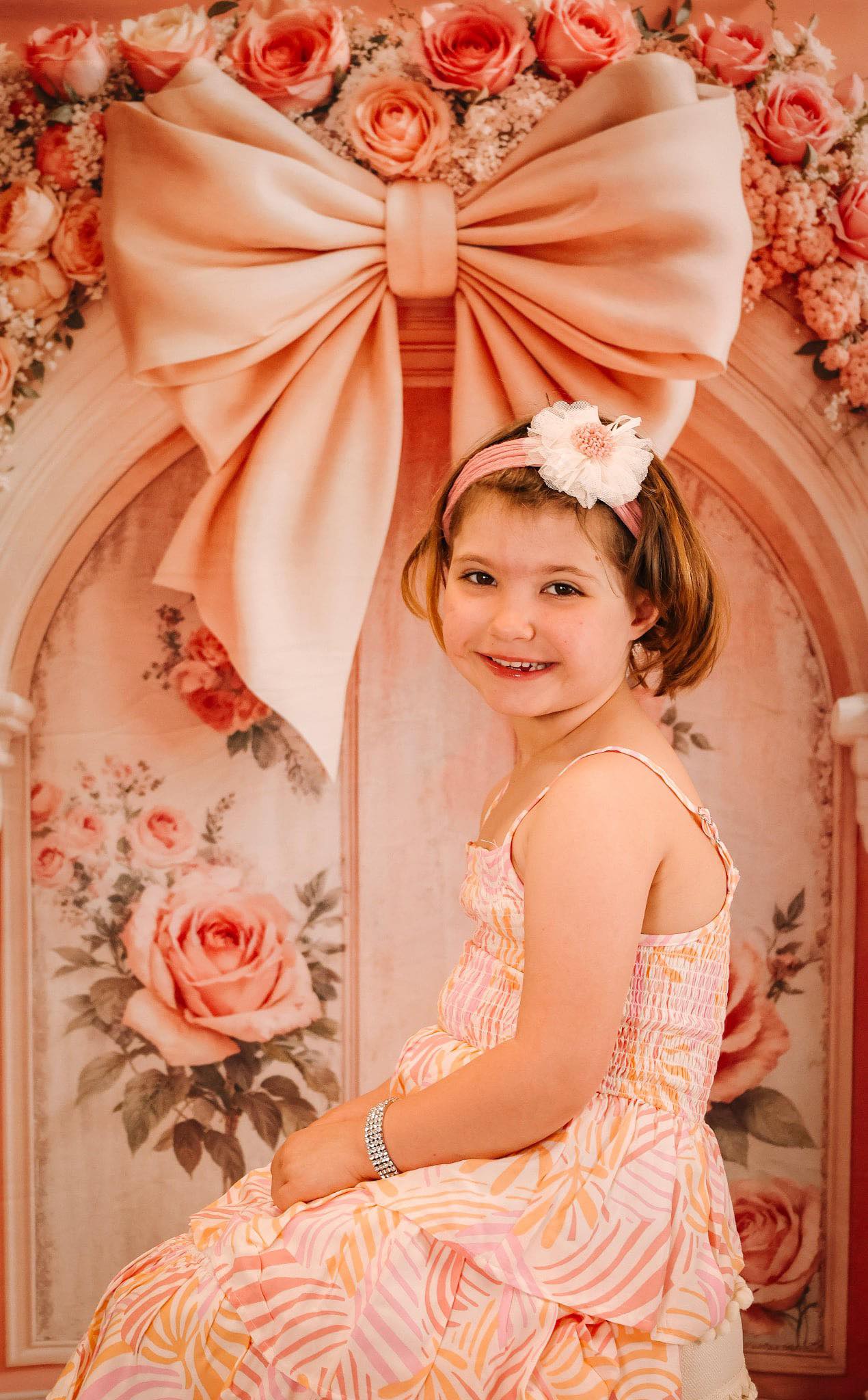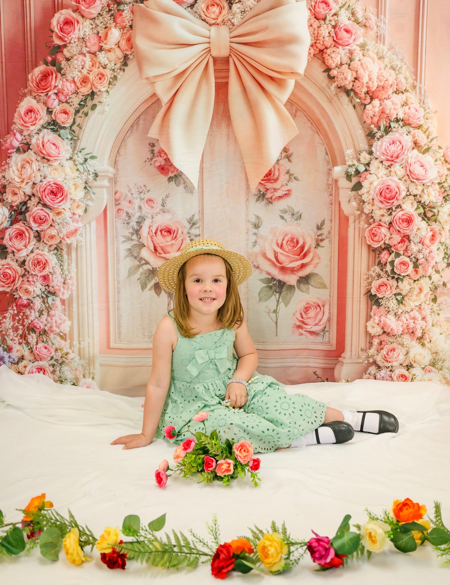 Flower Wall Backdrop Pink Roses Floral Bow Arch Vintage Wall Backdrop MRR9-84