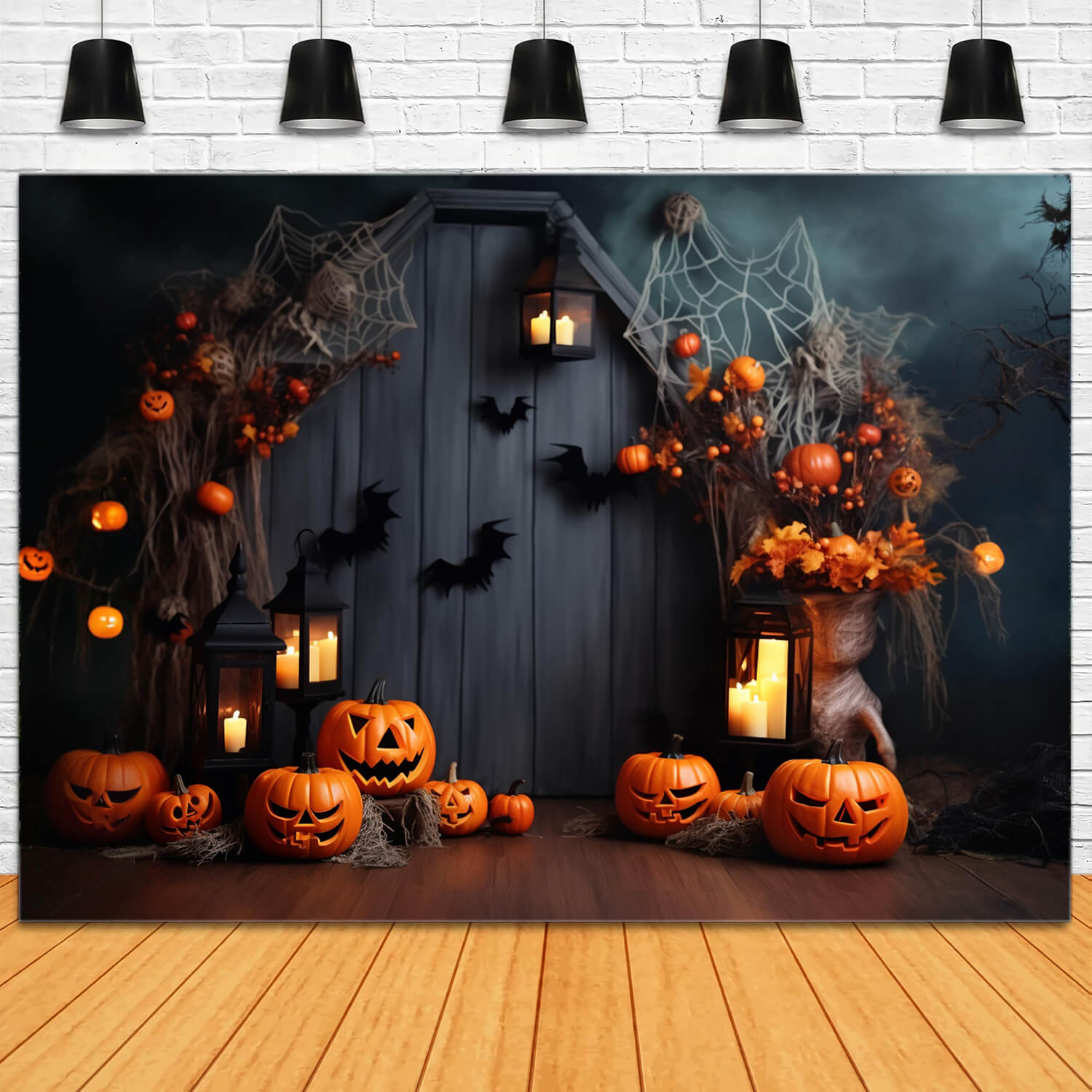 Halloween Pumpkin Lanterns Bats Backdrop RR7-102