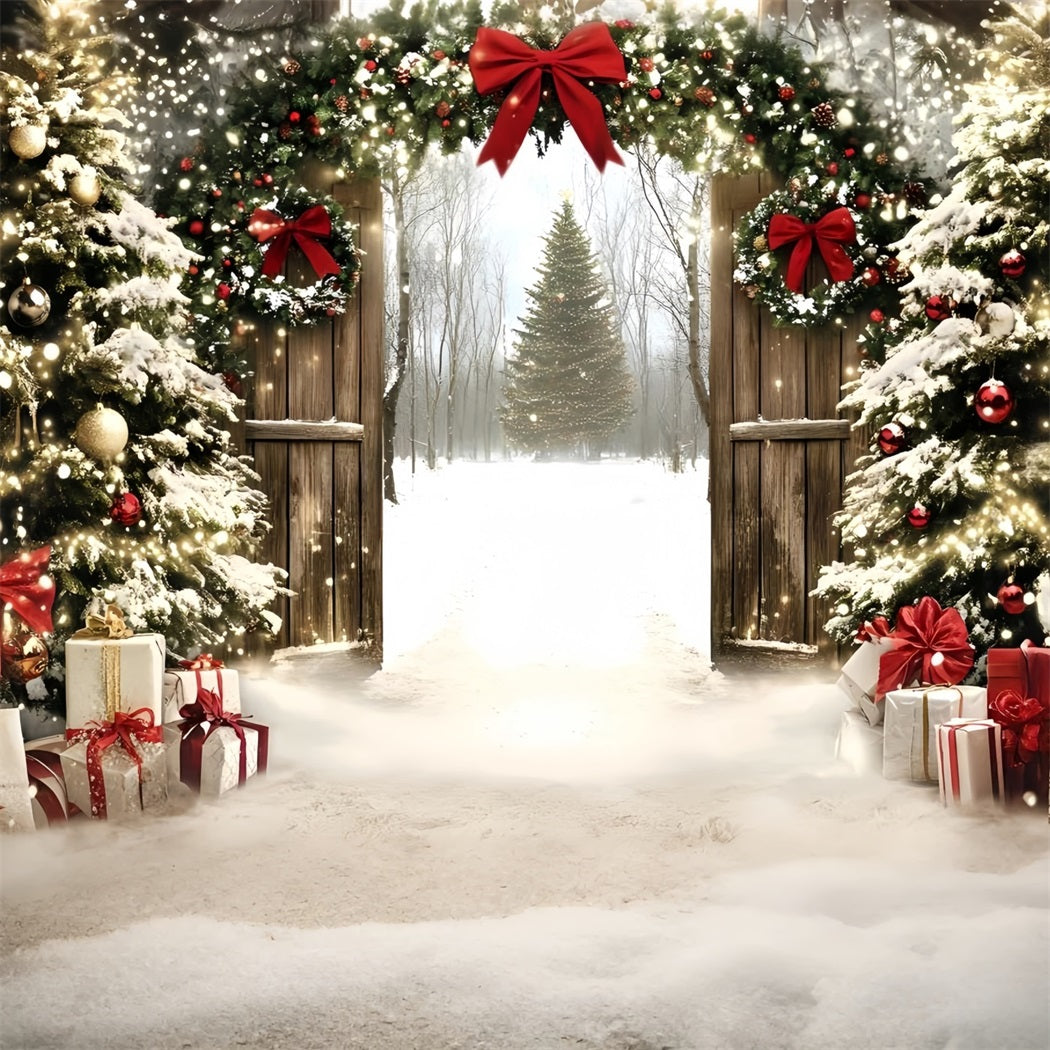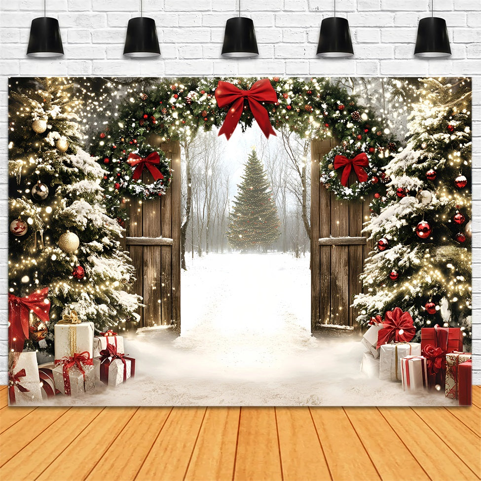 Holiday Backdrops Twinkling Christmas Gate Forest Christmas Tree Backdrop GQ58-1