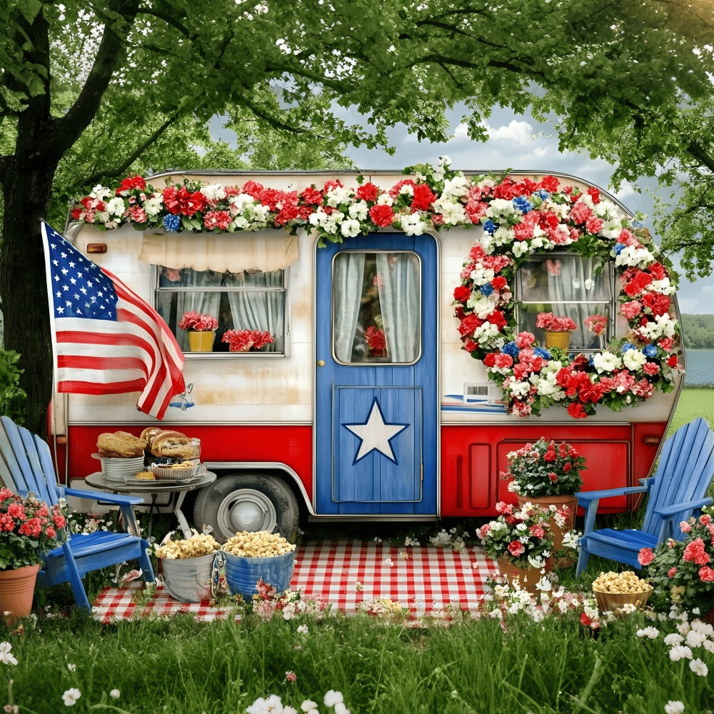 Independence Day Backdrop Patriotic Garland Camper Picnic Backdrop GQ5-14