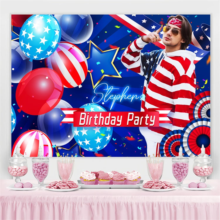 Independence Day Backdrop Stripes Stars Custom Birthday Backdrops LXX5-65