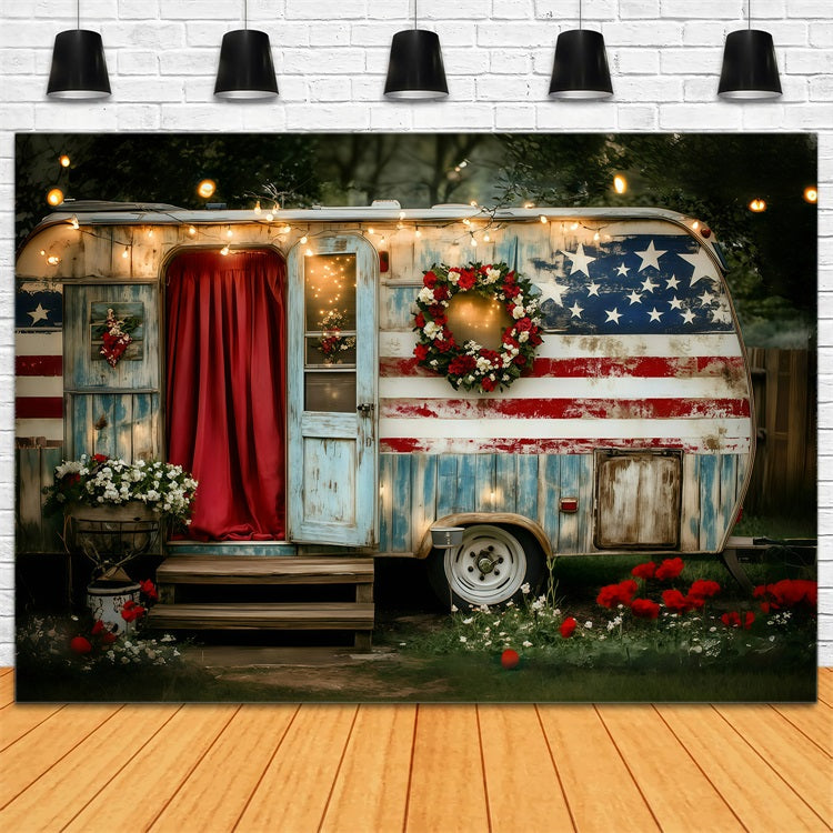 Independence Day Backdrop Wreath Camper Lights Backdrop GQ5-1