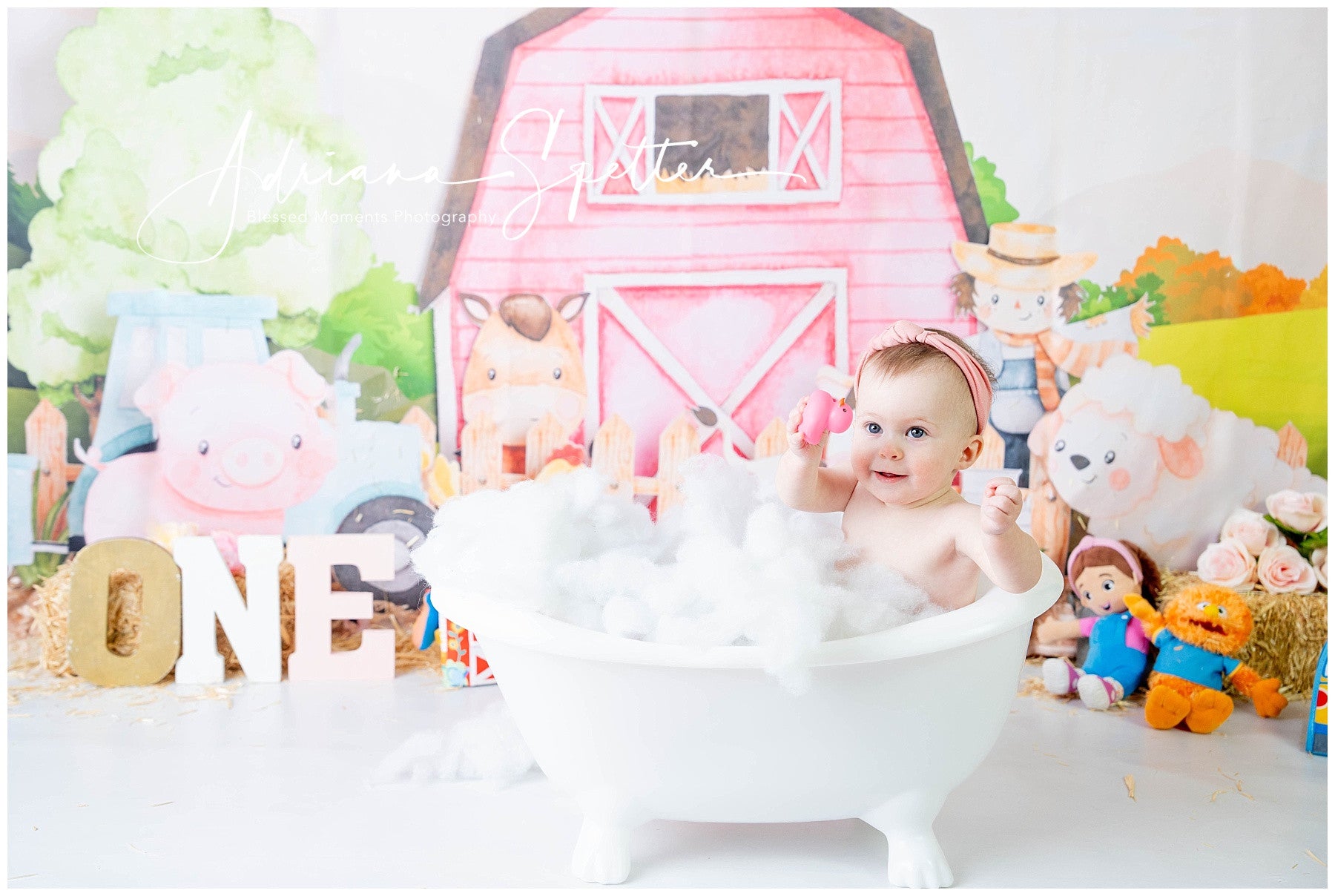 Kids Photo Backdrop Cartoon Farm Animals Barn Newborn Backdrop MRR9-125
