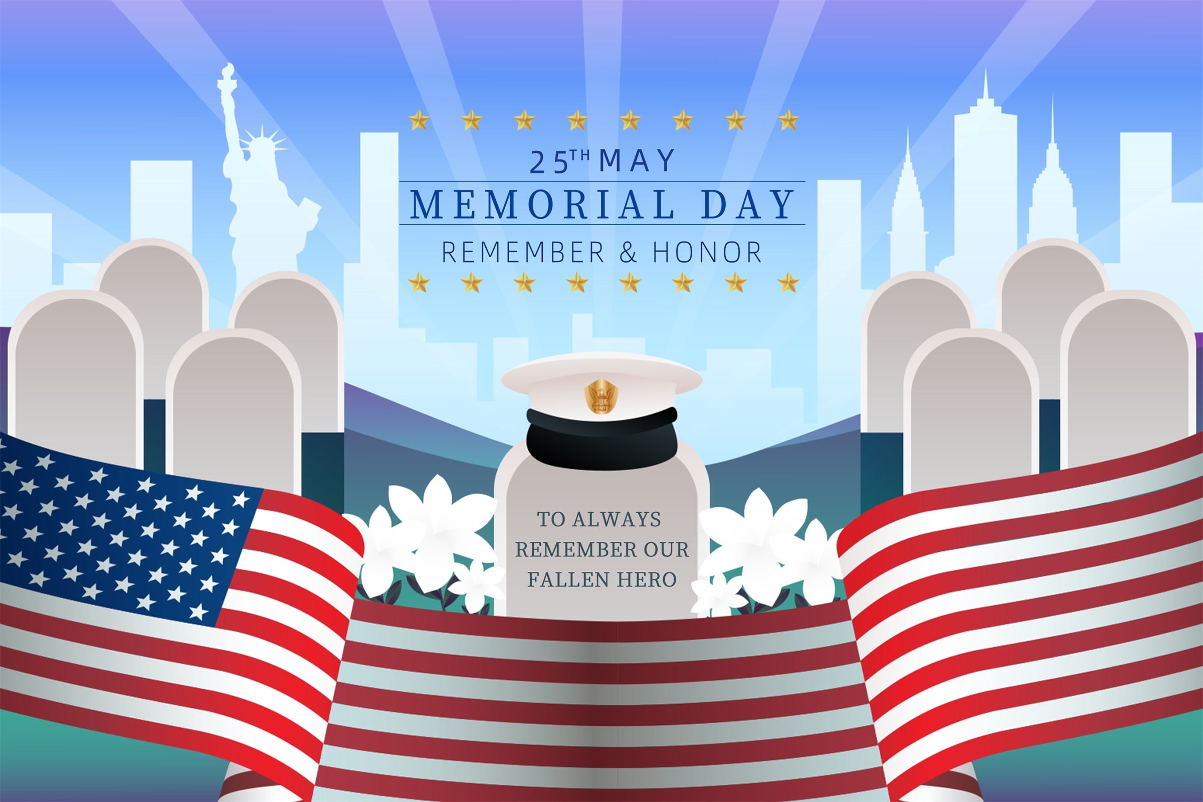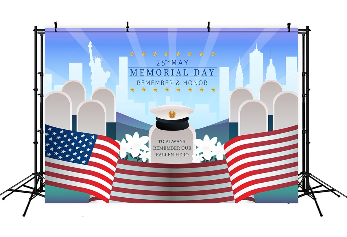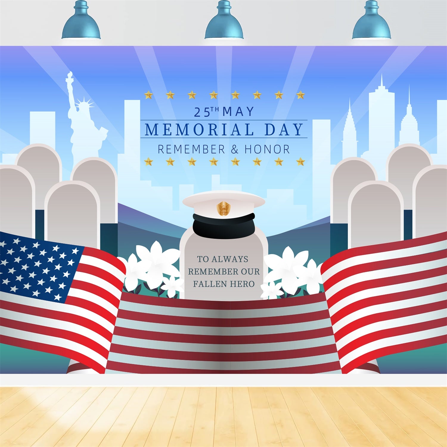 Memorial Day Backdrops Patriotic Tribute Statue Liberty Backdrop XY2-35