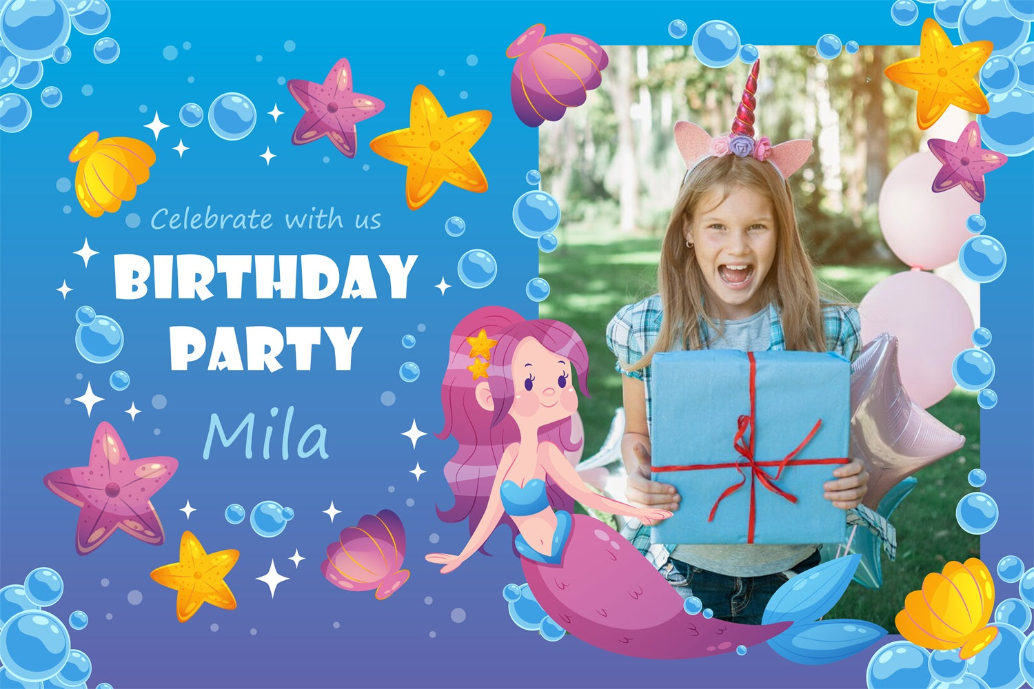 Personalised Birthday Backdrops Under the Sea Mermaid Party Backdrop BRP2-123
