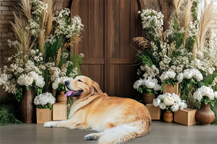 Pet Photo Backdrops Rustic Wooden Door Flower Backdrop LXX1-255