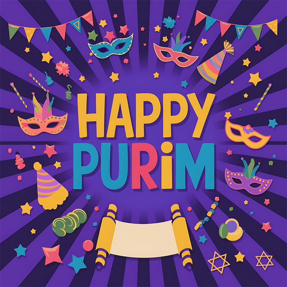 Purim Backdrop Celebration Mask Confetti Party Backdrop GTY3-21