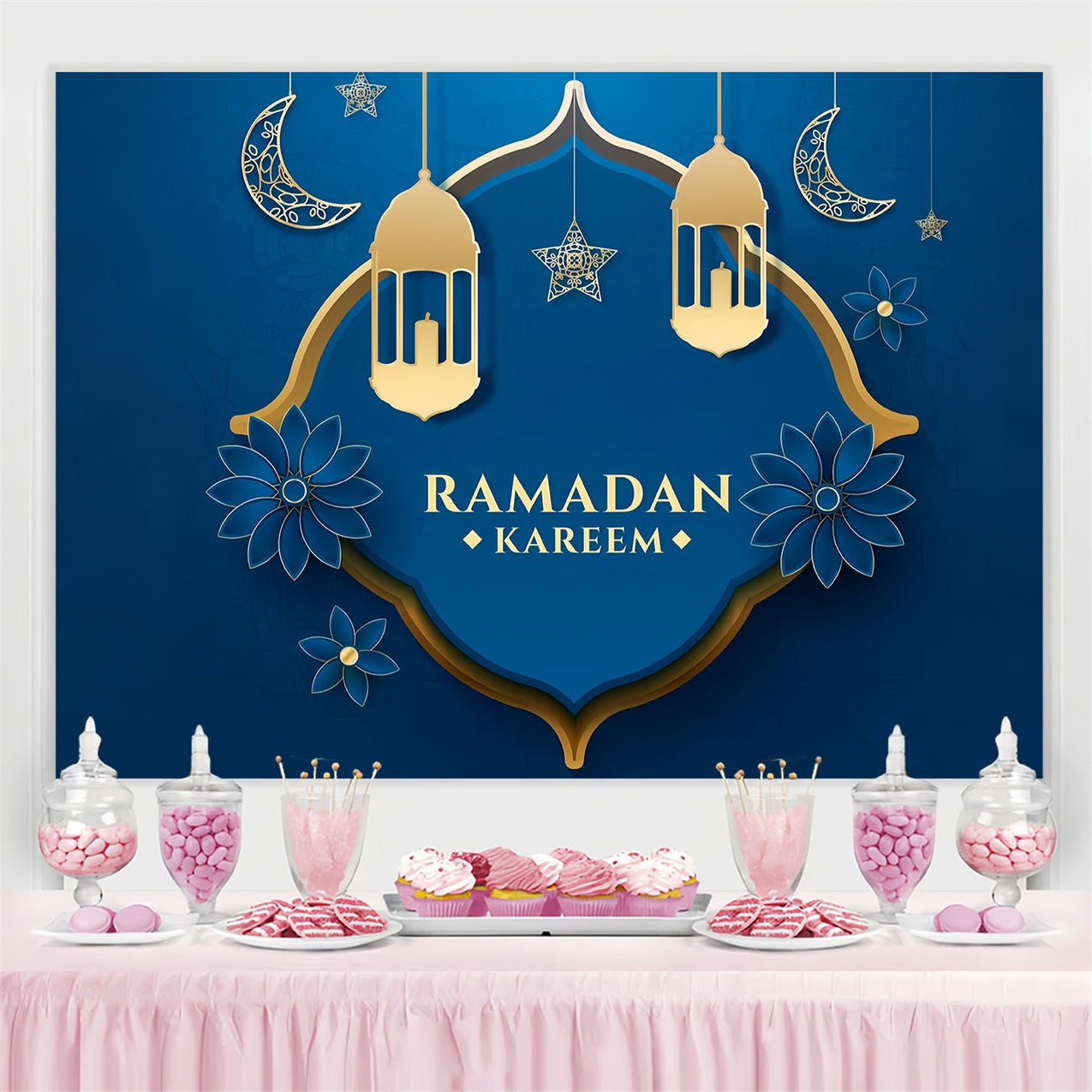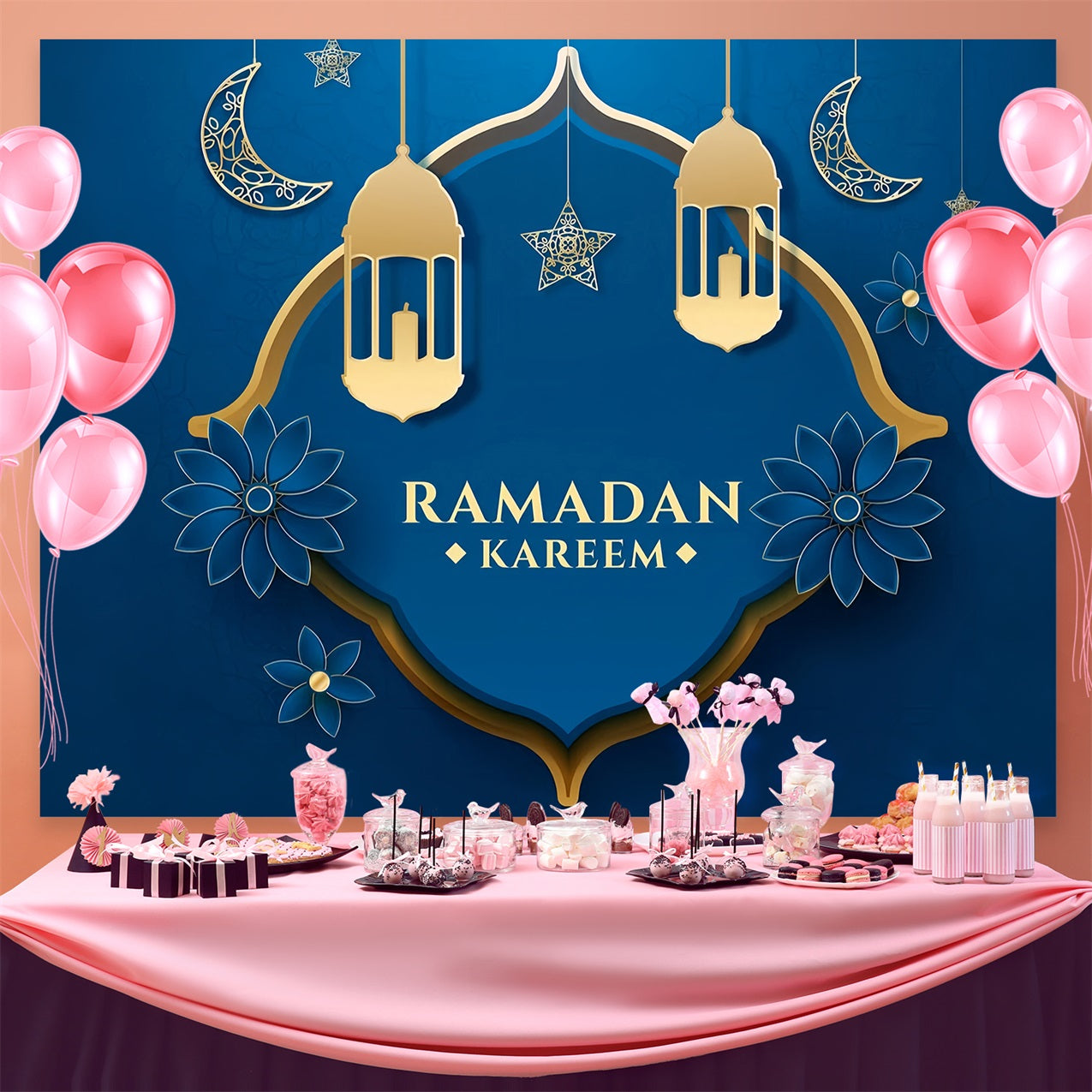 Ramadan Mubarak Backdrop Blue Floral Crescent Backdrop GQ3-31