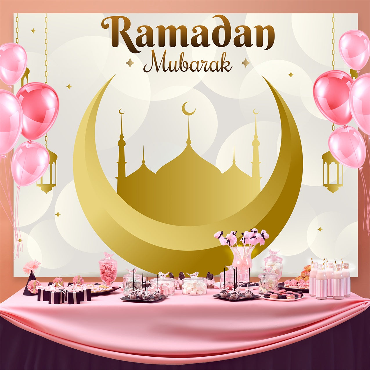 Ramadan Mubarak Backdrop Golden Crescent Hanging Lanterns Backdrop GQ3-24