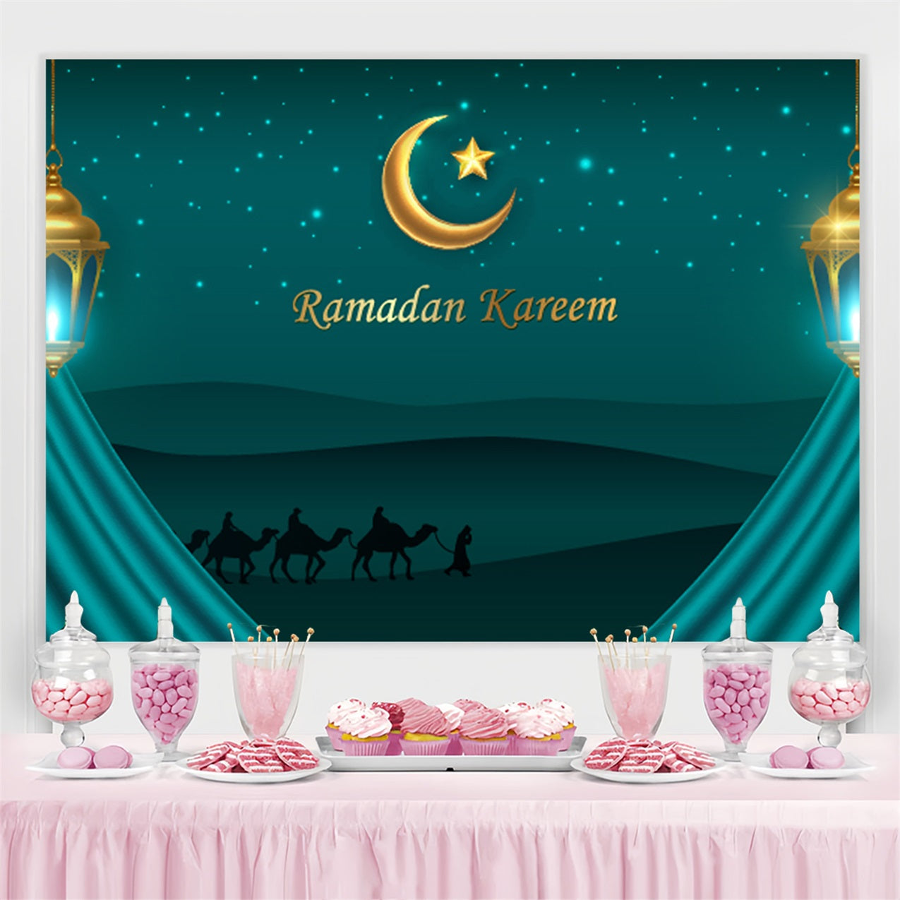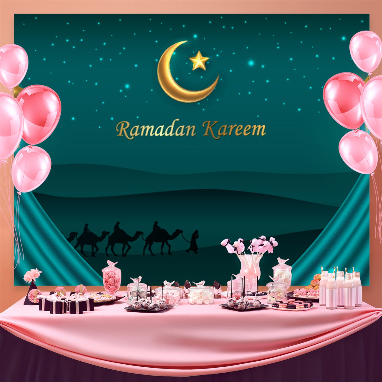 Ramadan Mubarak Backdrop Starry Night Desert Camels Backdrop GQ3-36