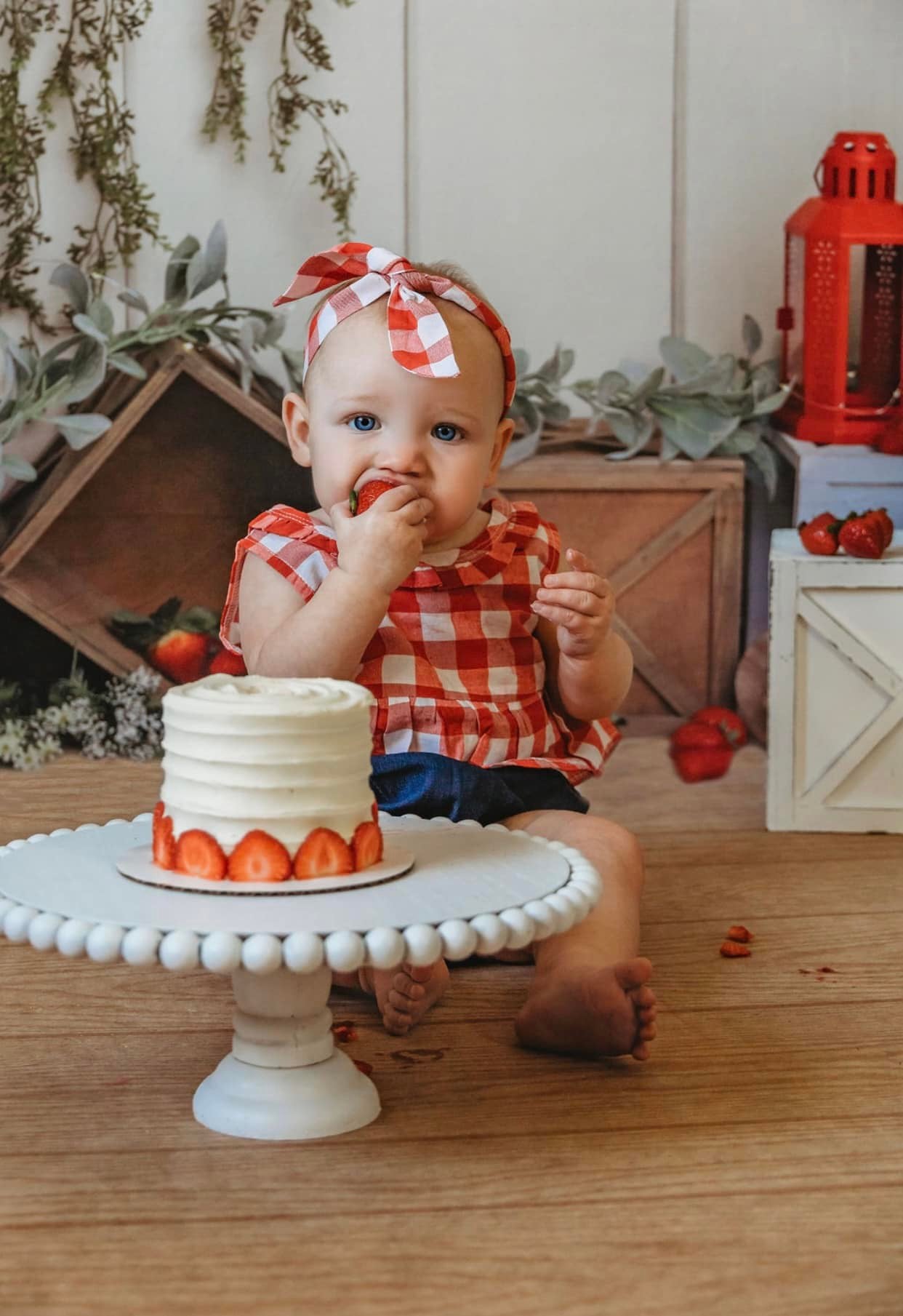 Spring Backdrop Rustic Crates Strawberries Red Lanterns Spring Photo Backdrop MRR9-4