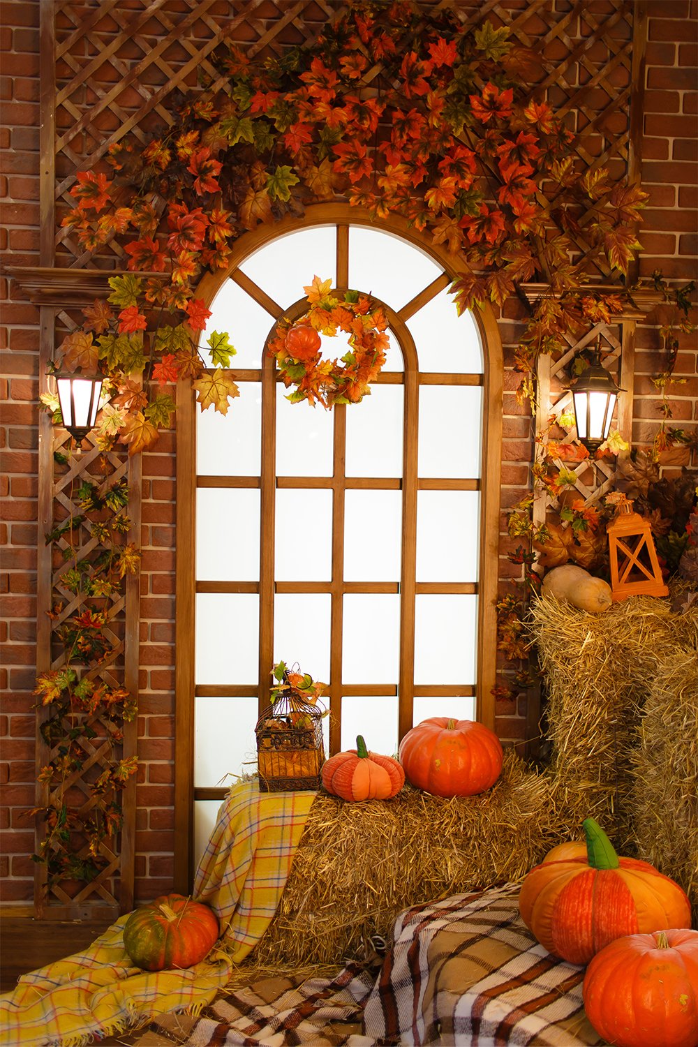 Window Pumpkin Straw Barn Halloween Backdrops for Photography DBD-P19028